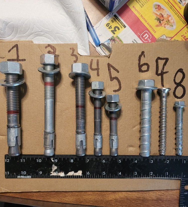 Overstocked on anchor bolts and letting them go for a good price, let me know which one and how many you want and I'll let you know a price Dont always get my messages so if i dont respond text 408**417*** 8347