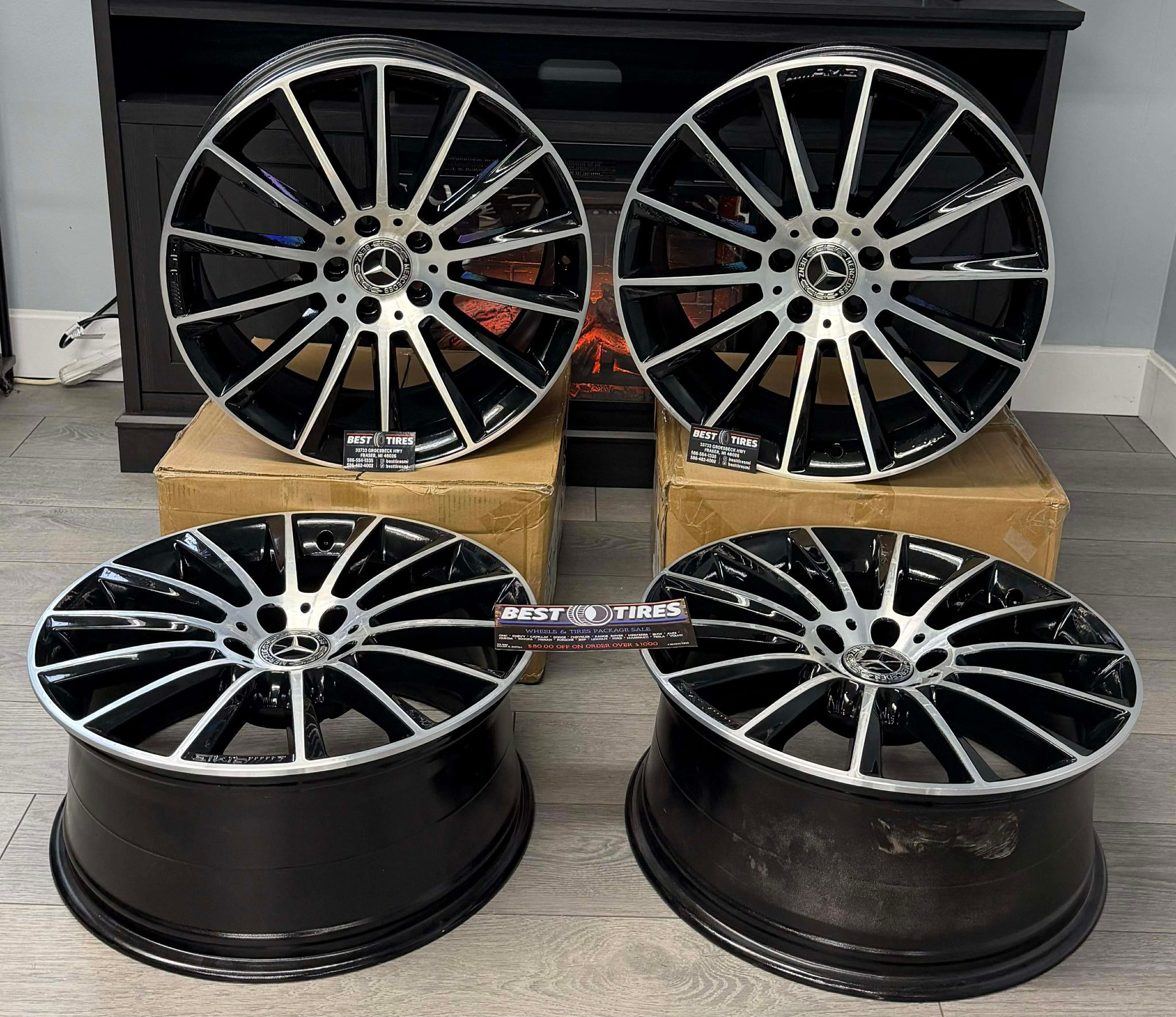 (Set Of 4) 19’ Inch Mercedes Benz AMG OEM Factory Genuine Wheels Rims Staggered 19x8.5/9.5 offset 34.5/48 5x112 Machined Black