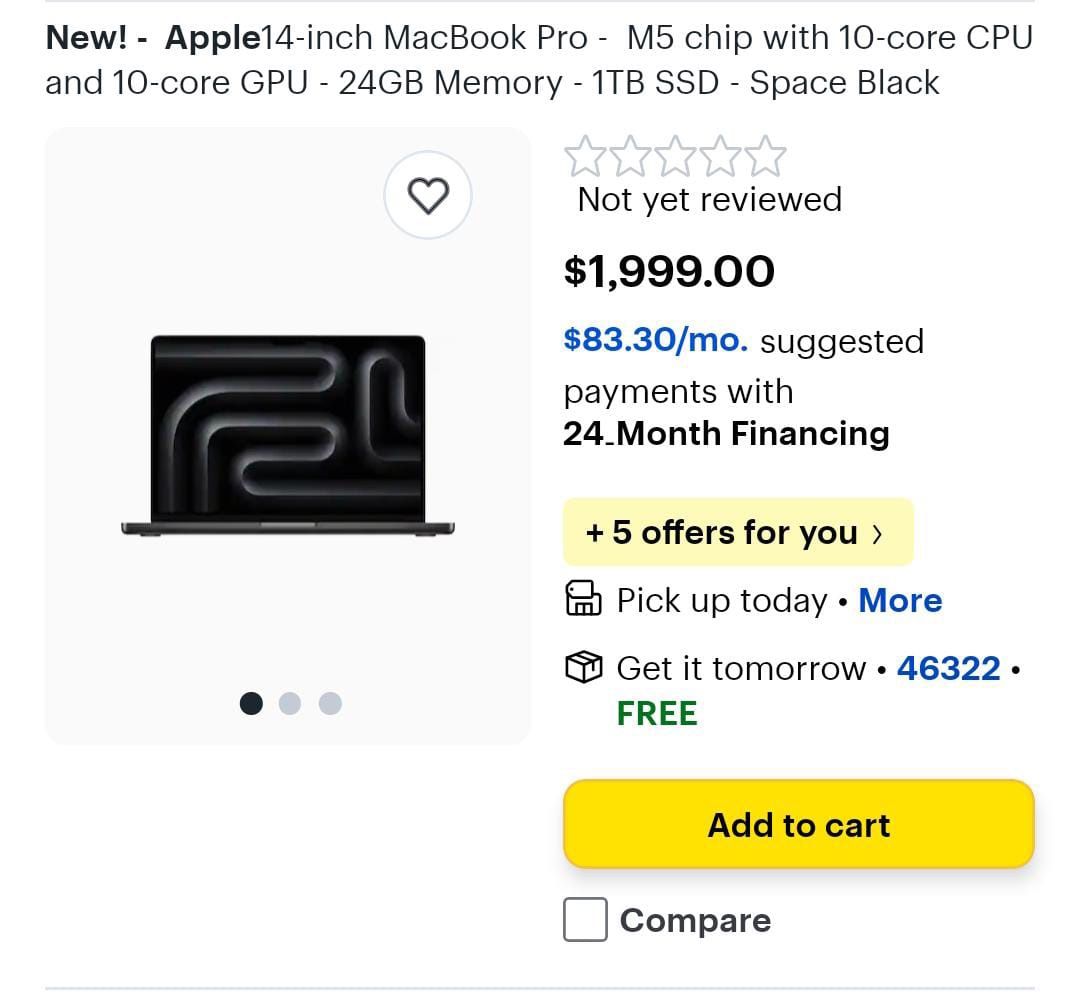 New! - AppleMacBook Pro 14-inch - M5 chip with 10-core CPU and 10-core GPU - 24GB Memory - 1TB SSD - Space Black, sealed
