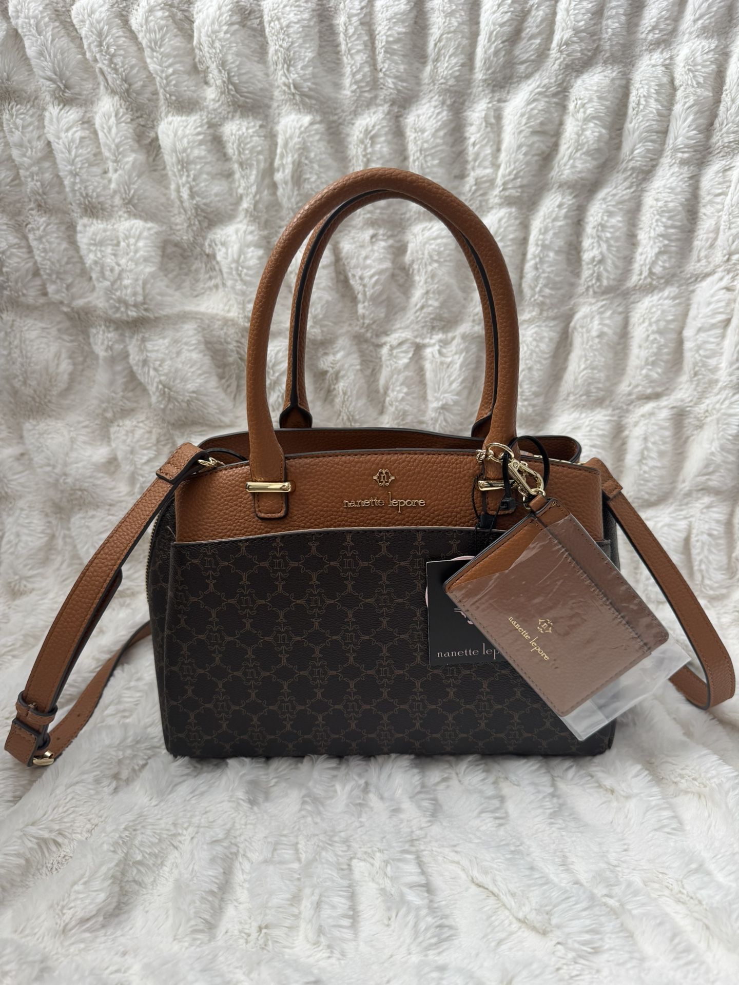 Never worn, brand new Nanette Lepore hand bag with removable straps, clip on wallet, and pockets with zippers!