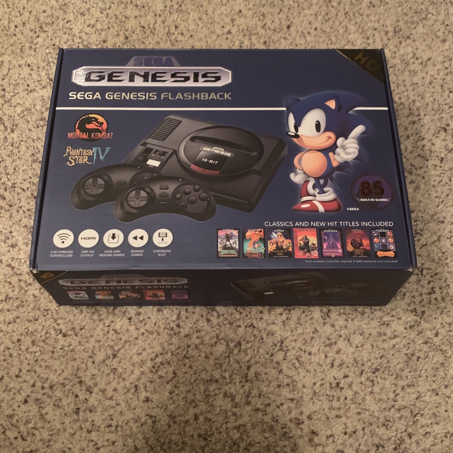 New sega genesis console with 2 wireless remotes and 85 built in games.