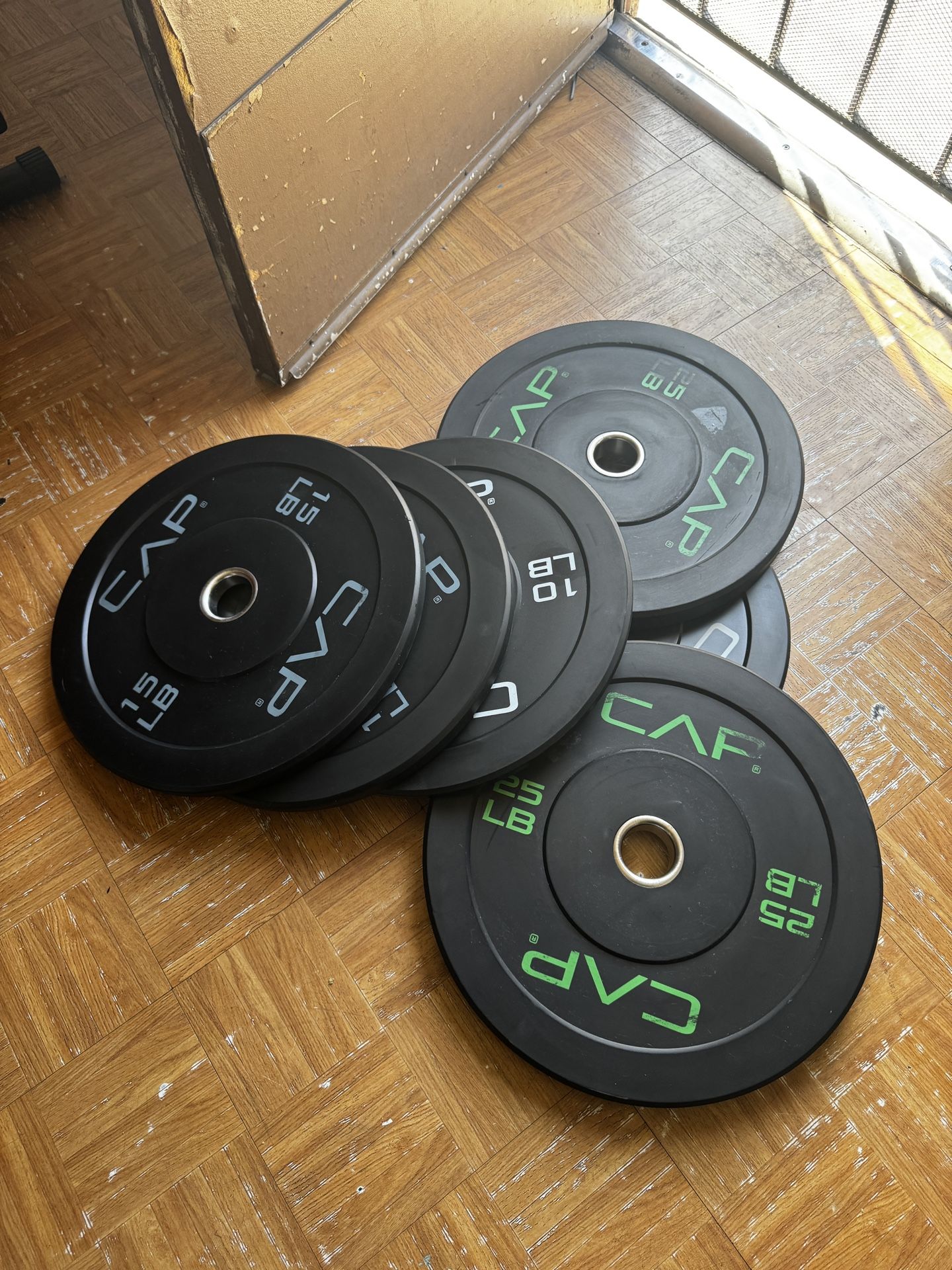 Moving out. No longer can take them, in normal wear and tear, 100 pounds total. Good condition (2) 10lbs (2) 15 lbs (2) 25 lbs