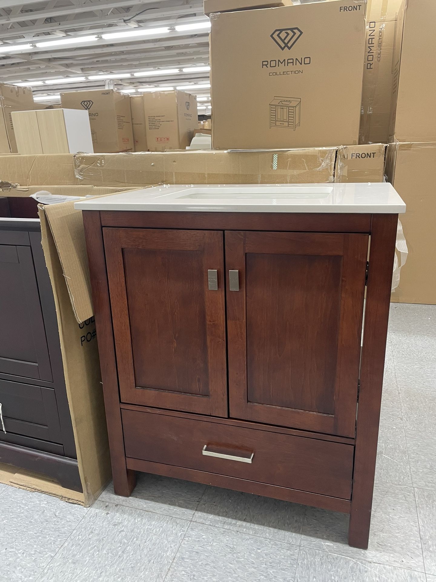 Bathroom Vanity Cabinet 30” Solid Birch Quartz Top With Sink And Backsplash
