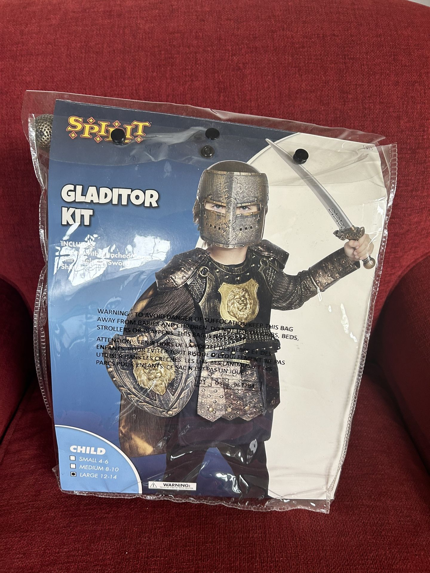 Includes: Armor with attached Cape, Shirt, Helmet, Sword, Shield.