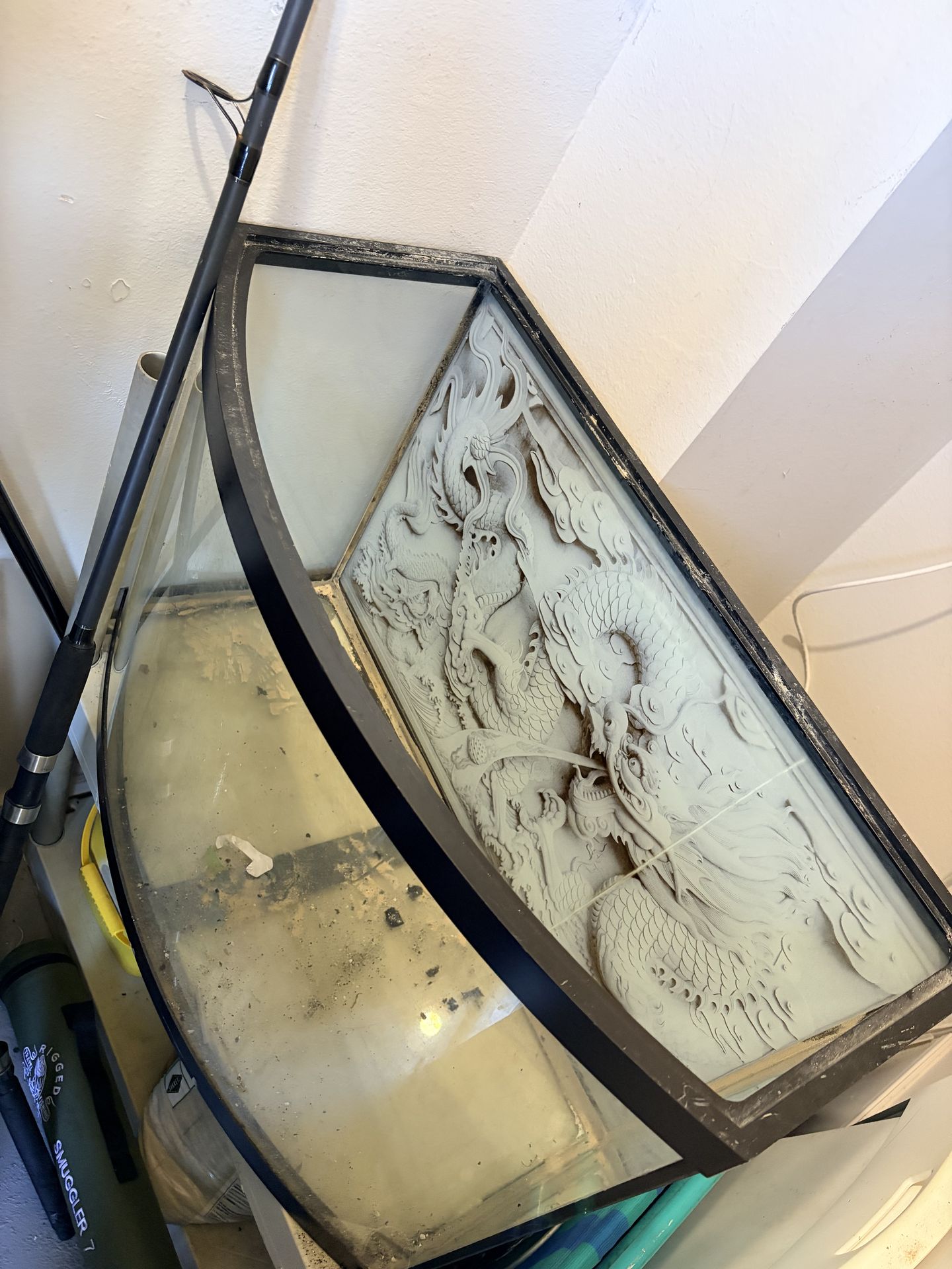 I think is 40 galls maybe more I honestly don’t remember. I don’t need it anymore & yes it holds water..come pick it up today.