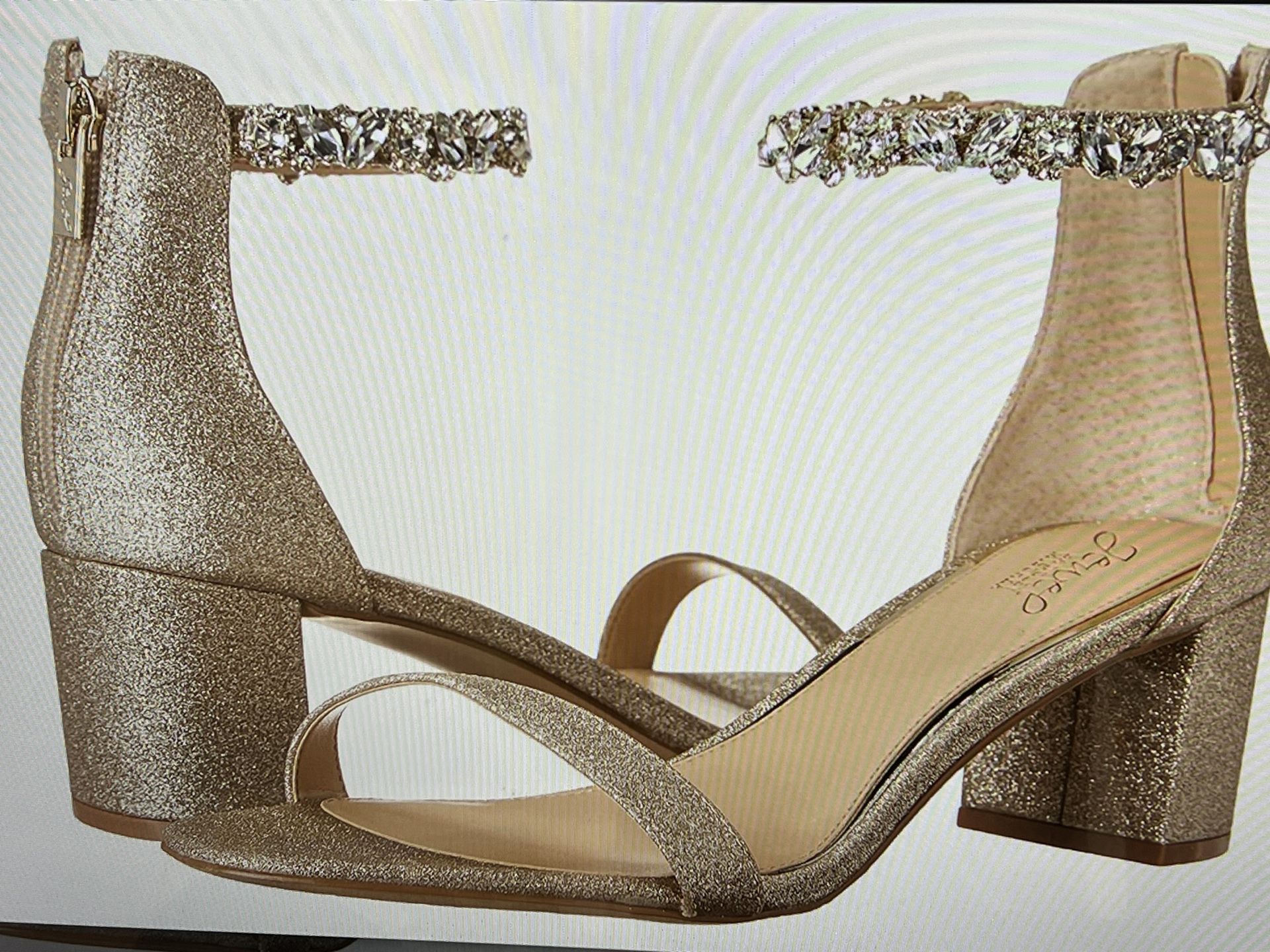Jewel Badgley Mischka Catalina Heeled Sandal Size: 8 Color: Gold Glitter Description: 100% Micro Glitter Rubber Sole Heel Measures Approximately 2.16” Lightly Padded For Extra Comfort Brand New Purchased at Nordstrom