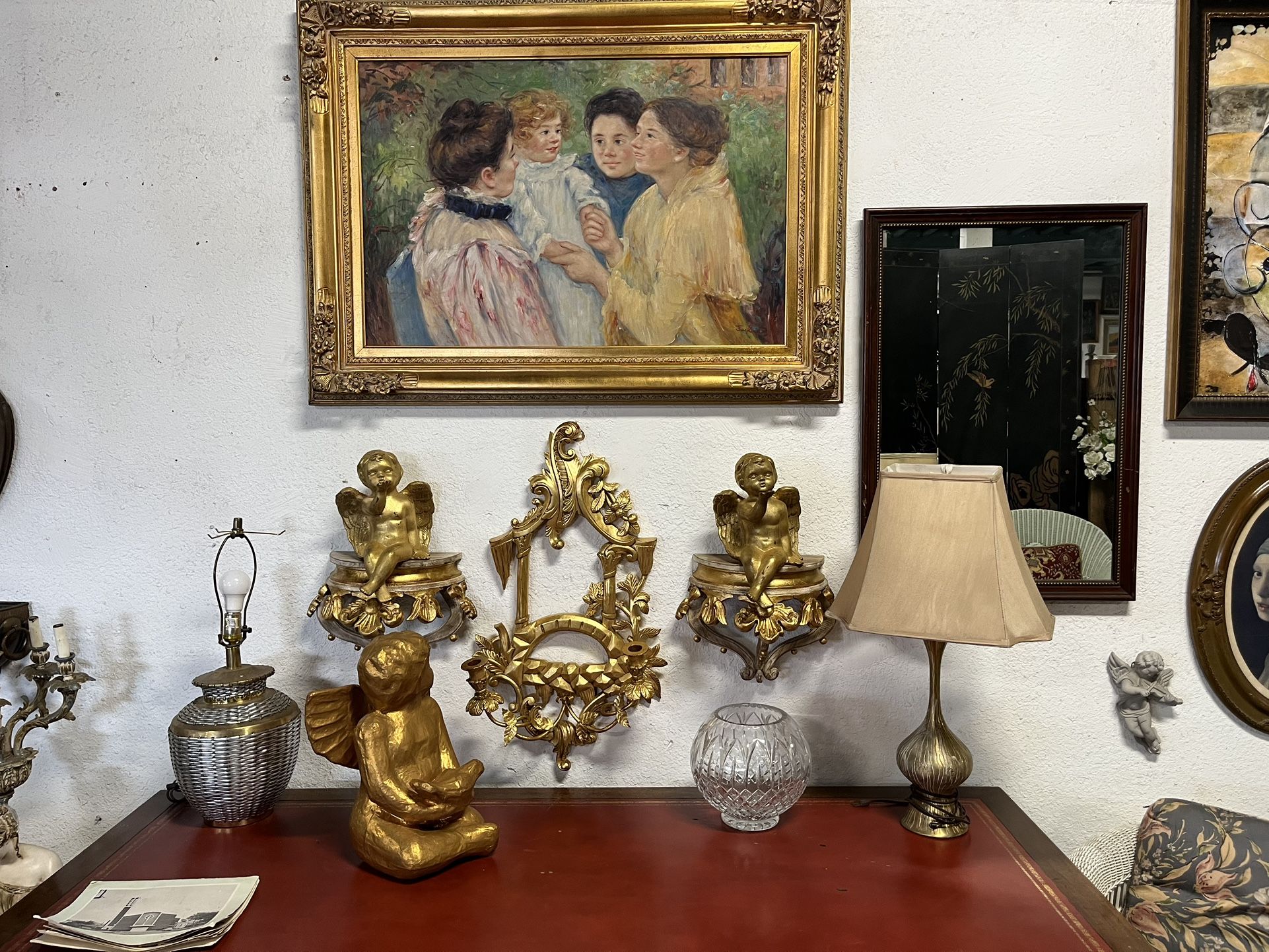 Lamps, Large Oil Painting, Cherubs & Wall Plaques