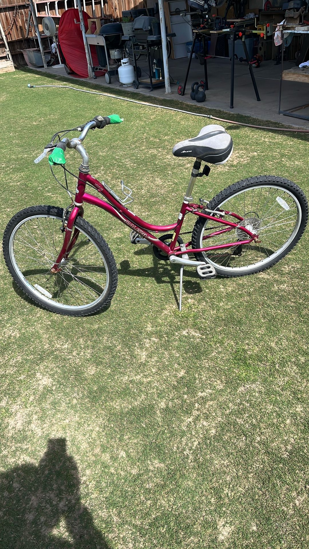 26 inch girls Raleigh seven speed mountain bike. Handle grips need replacing. They were the gel grips that leaked. A little rust otherwise in great shape.