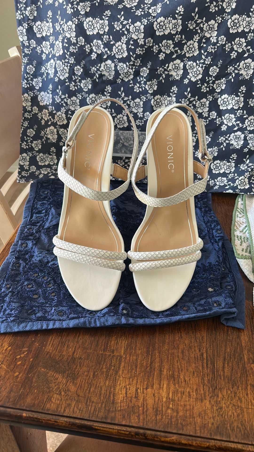 Vionic. White sandal. Pattern is Emmy Lizard size 11. Great buy. Brand new.