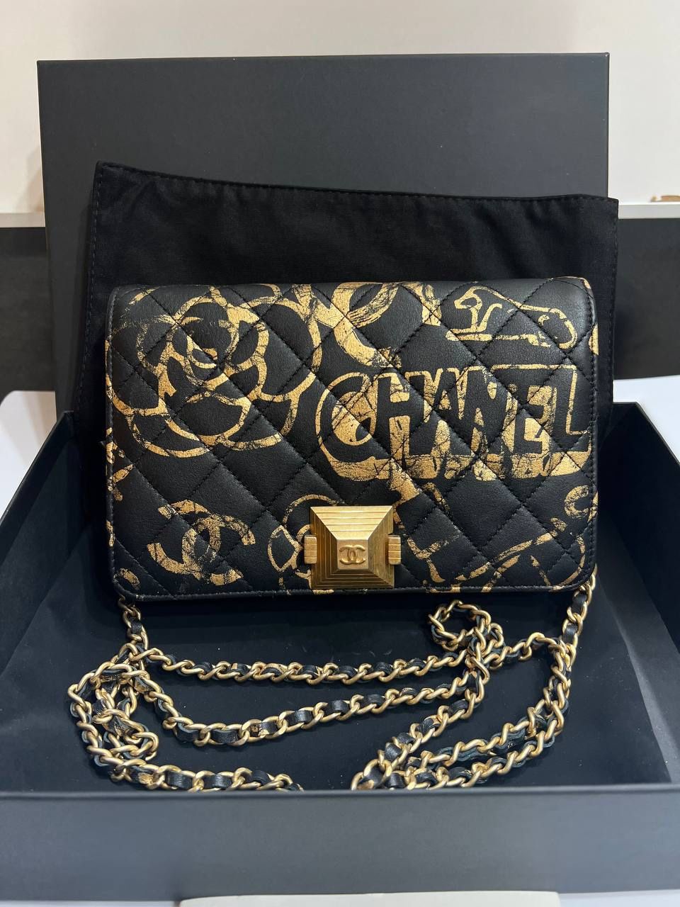 Chanel Graffiti Wallet on a Chain black and gold