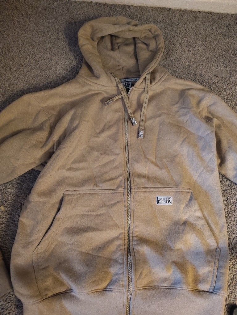 pro club men's heavyweight full zip fleece hoodie in khaki