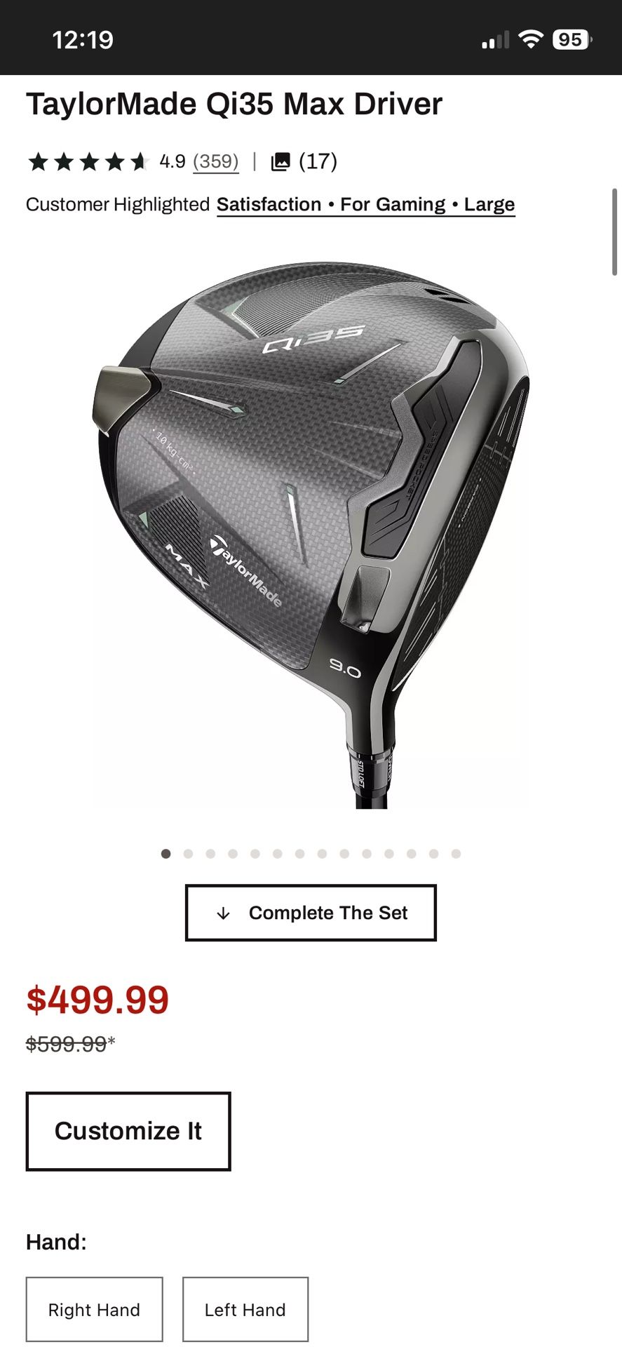 Selling my dad's Q35 Max Driver - he barely used it, so it's pretty much brand new. It's a 2025, right-handed, 9-degree loft with a flex graphic shaft. He paid $528 after tax and stuff for it on Dicks, but I'm letting it go for $320. Great deal for a near-new club!
