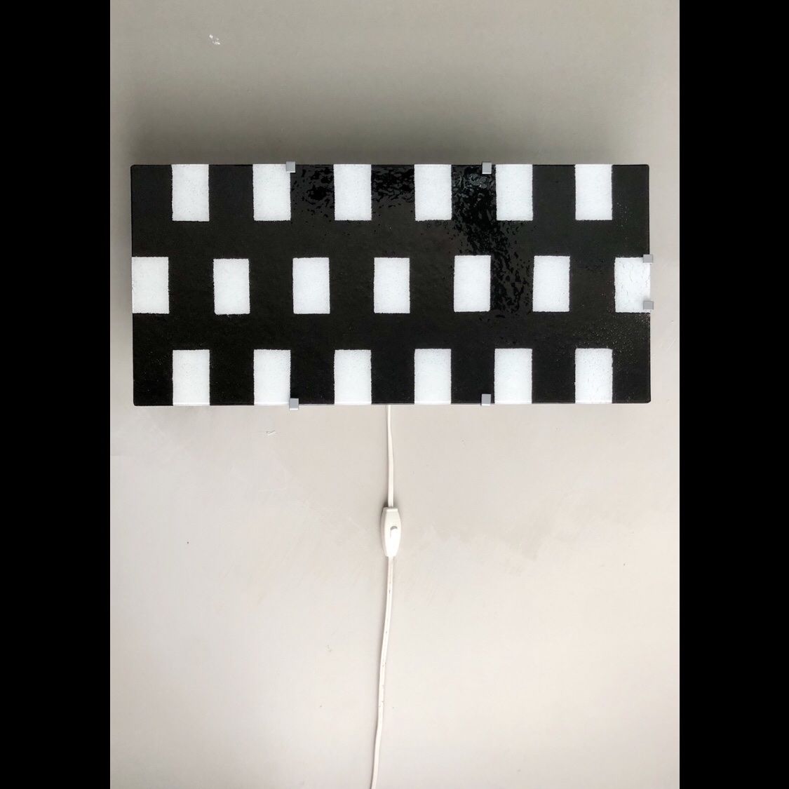 ▪️This plug in wall lamp/sconce doubles as wall art and light. ▪️22x10 inches ▪️It sticks out 4" from the wall ▪️Can be hung horizontally or vertically The price on eBay for the glass panel alone is 65. I'm selling the panel and light fixture together.