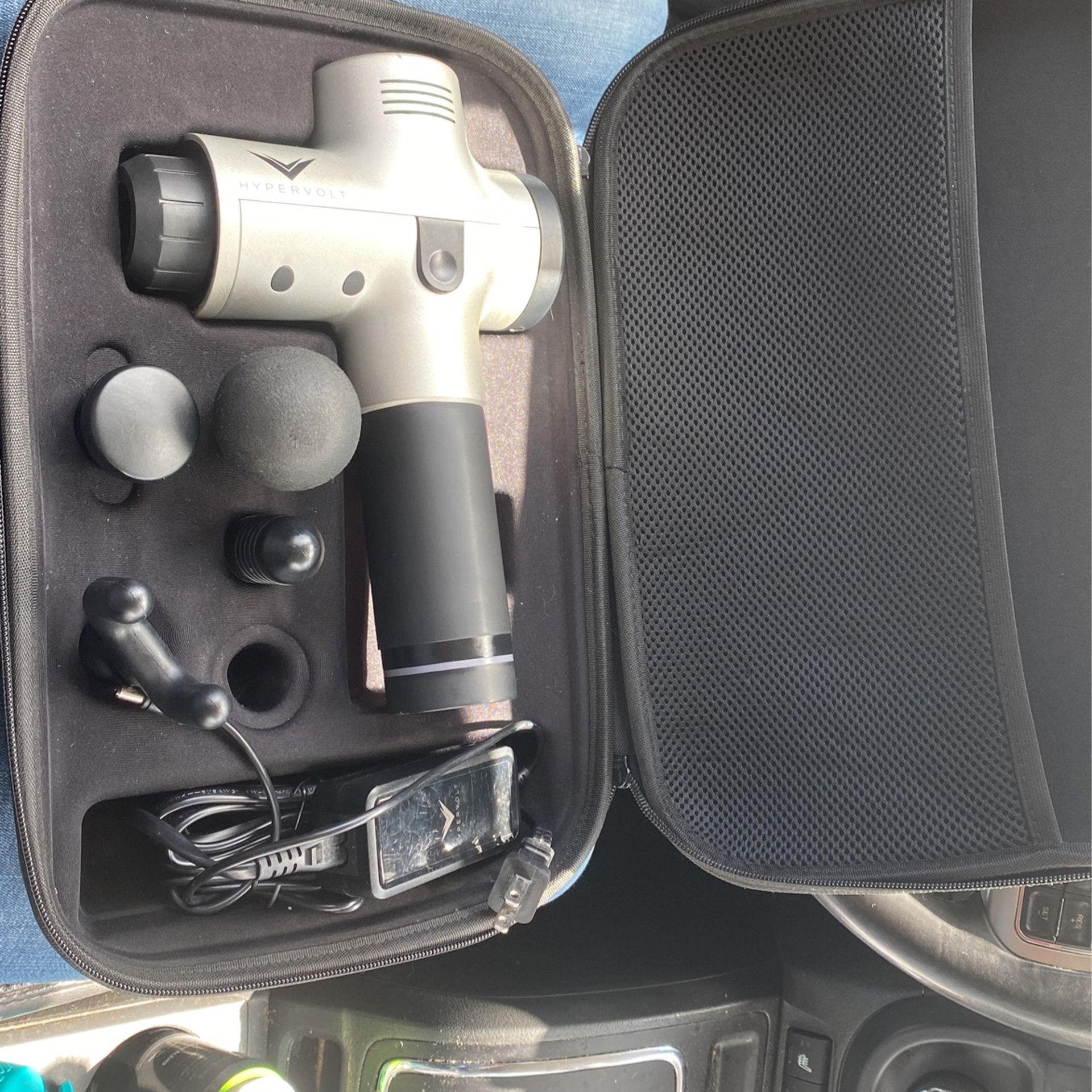 Hypervolt with case! 1st model. Has a little discoloring on top as you see in the pics but works the same as it did on day 1. Missing the 2 sided tip. Brand new $349, case $50 package would cost $400 brand new
