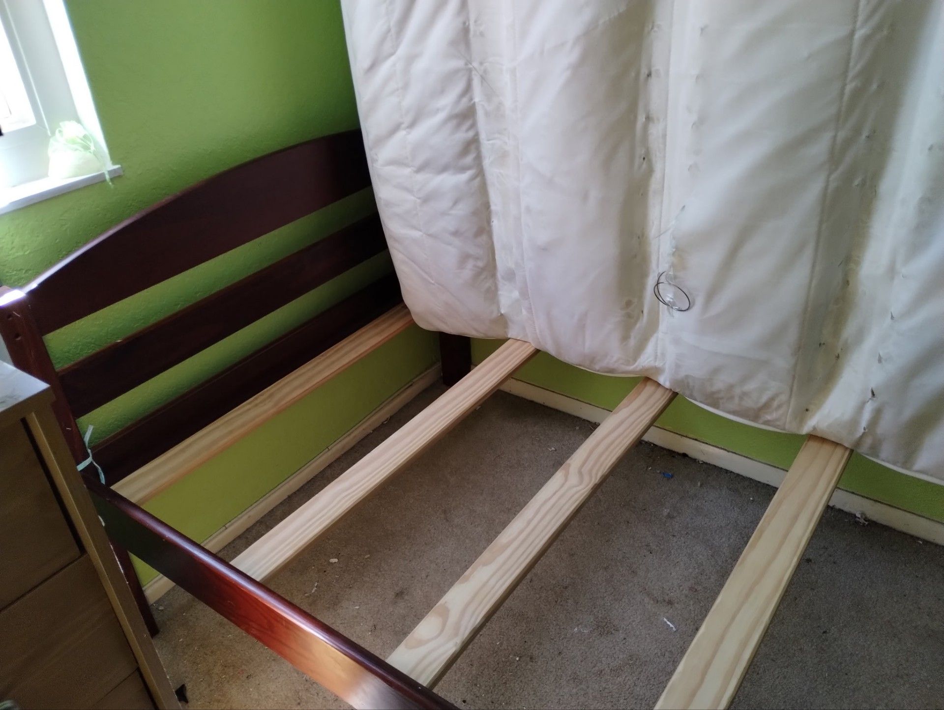 Used twin size bunk bed. Comes with hardware to use as bunk bed or 2 beds. Mattress included IF you want it. Some scratches from use.