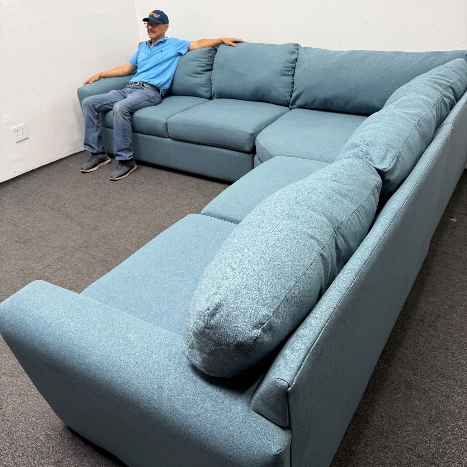Teal 💎 Blue / Green Corner Sectional Couch with Large Cuddler Corner Piece - Can Deliver *Rare Find