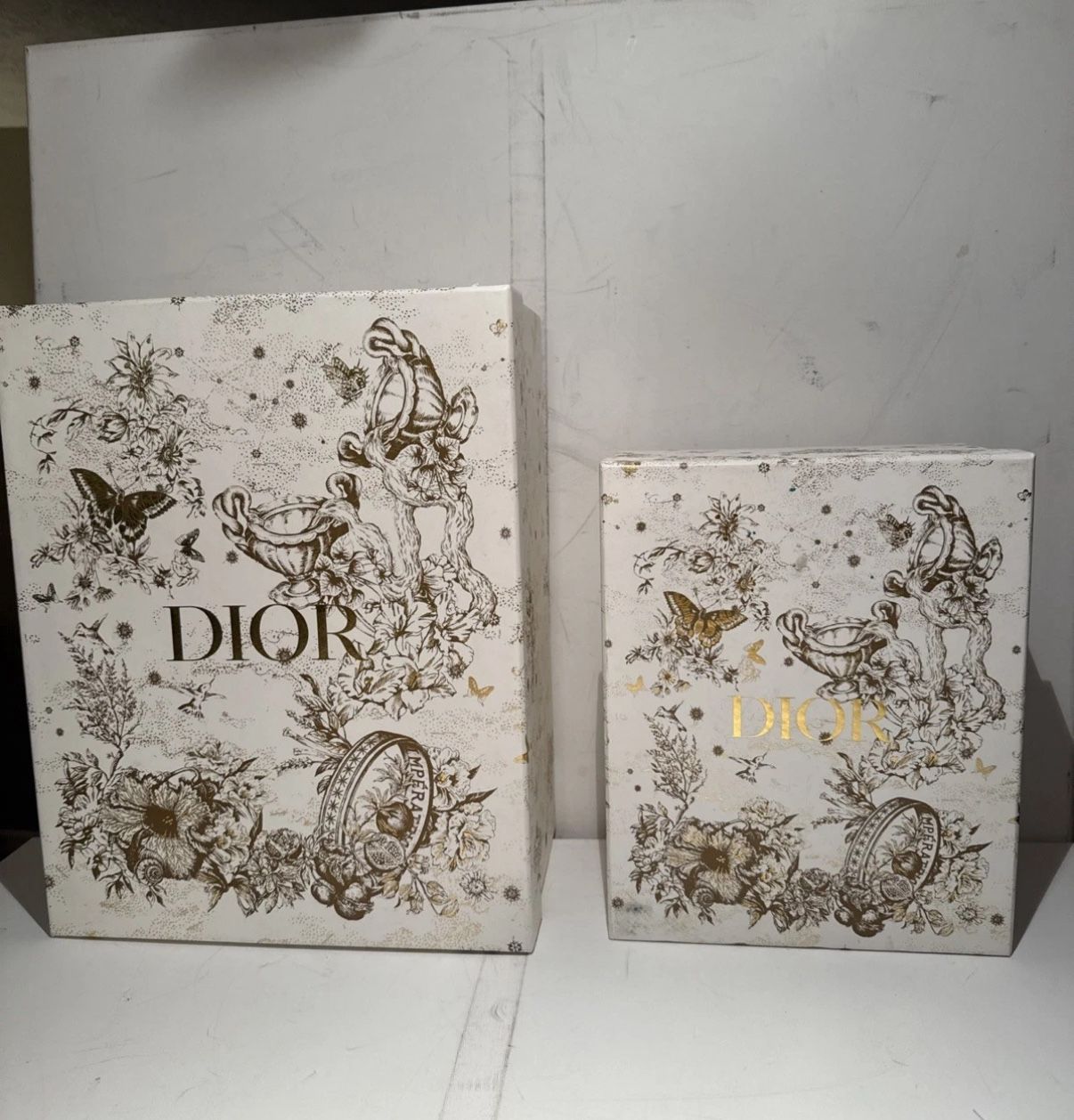 Add a touch of luxury to your storage or gifting with this set of 2 Authentic Dior 2021 Holiday Gift Boxes. These are genuine Dior boxes from the limited-edition holiday season collection — perfect for collectors, resale presentation, or elegant home décor. • Includes: • 1 Large Dior Box: approx. 15” x 12” x 7” • 1 Medium Dior Box: approx. 11” x 9” x 5.5” • Condition: Pre-owned, excellent condition. Light signs of handling may be present. • Authenticity: 100% authentic Dior packaging. • Use: Ideal for gift giving, storage, luxury display, or collector’s showcase. ✨ Rare to find in a set — don’t miss the chance to elevate your presentation with genuine Dior holiday packaging!