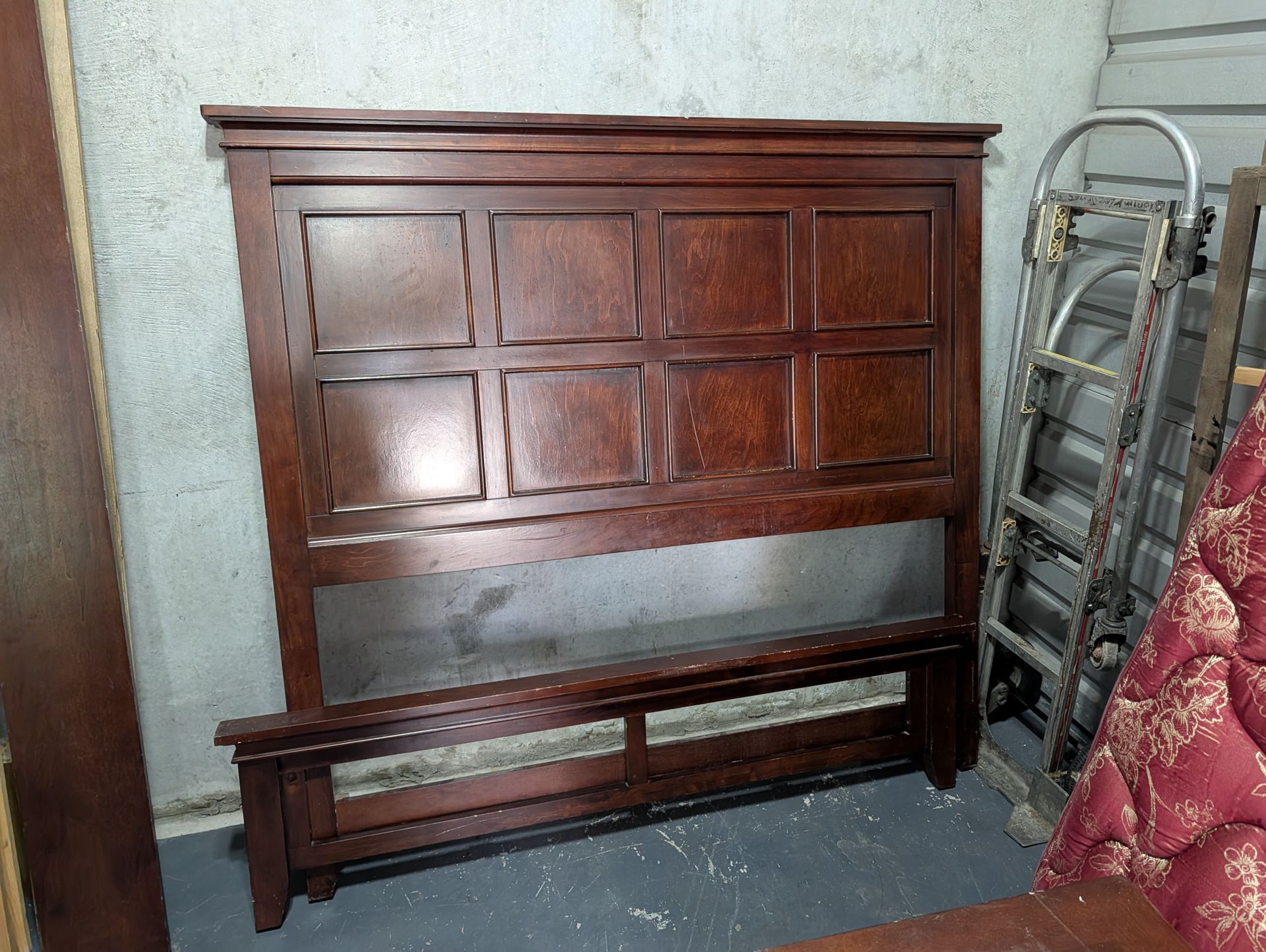This bed was very expensive. It is very heavy. You will need 2 people to move it. I'm advertising it as in fair condition because of some minor blemishes. No major damage. Complete bed: Headboard Footboard Side rails Support crossbeams Center supports. Matching dresser/credenza and cabinet/nightstand are also available. Check out my other listings. I have it in storage 815 E Fletcher Ave Tampa FL 33613