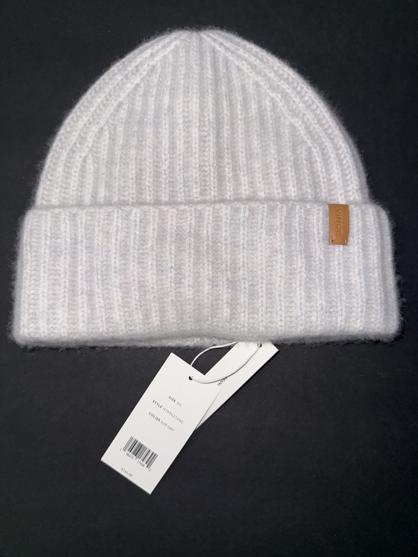 VINCE men’s Wool-Cashmere Shaker-Stitch Hat beanie, Color Gray New NWT $145