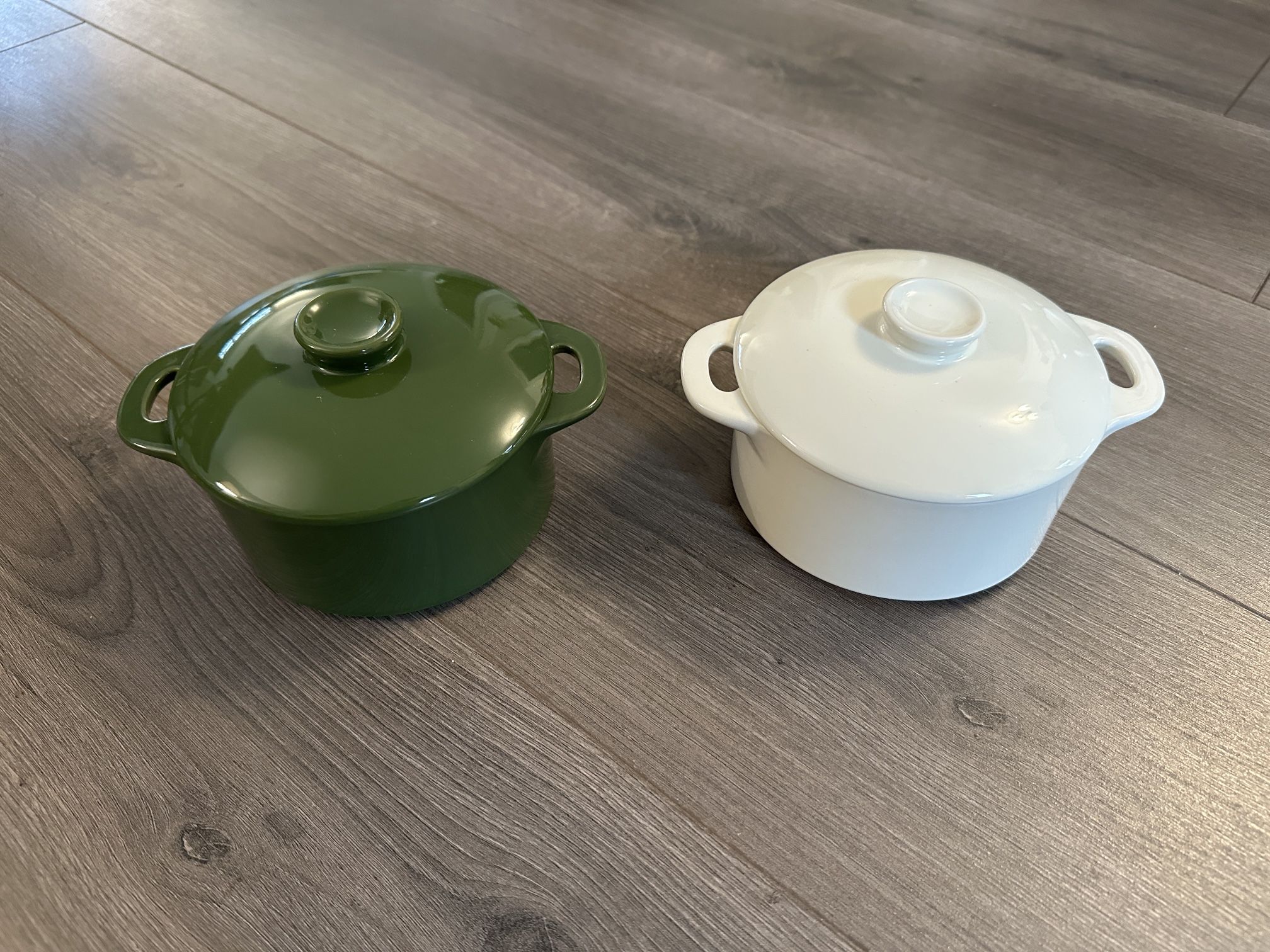 Selling brand new a Mini Round Ceramic Cocotte Set. Never been used before. They’re oven, microwave, freezer, dishwasher safe, and each cocotte can fit 19oz. Downsizing so we no longer need them. Product info: https://offerup.com/redirect/?o=aHR0cHM6Ly9icm9jY3lvdXJib2R5LmNvbS9taW5pLXJvdW5kLWNlcmFtaWMtY29jb3R0ZS1zZXQv
