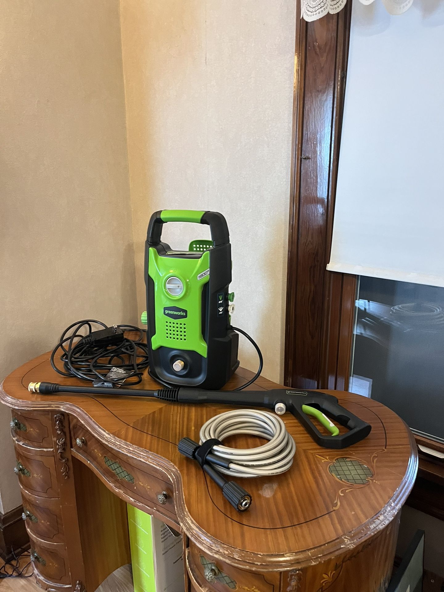 Perfect condition Greenworks 1600 PSI (1.2 GPM) Electric Pressure Washer (Ultra Compact / Lightweight / 20 FT Hose / 35 FT Power Cord) Great For Cars, Fences, Patios, Driveways