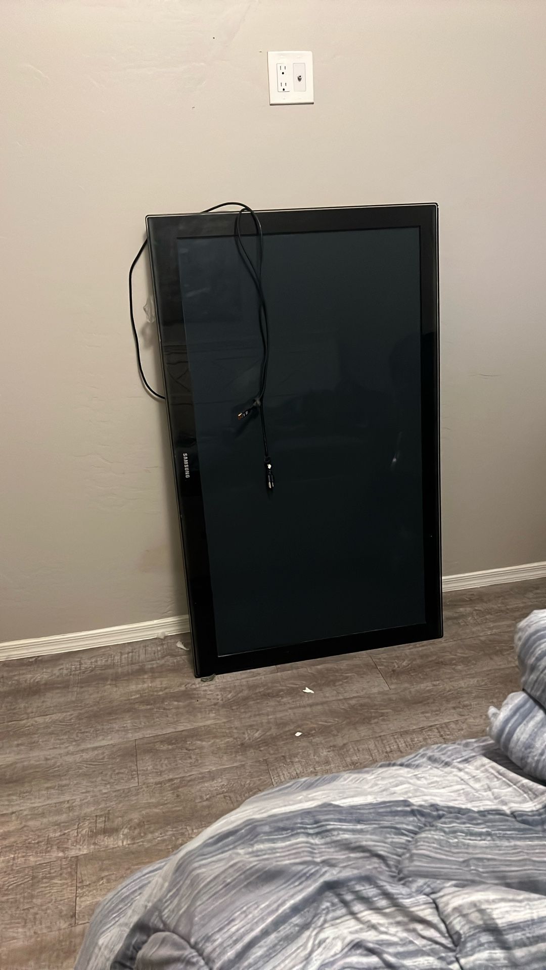 80’ Flat screen Samsung This tv works great but it is an older one so it weighs more than the ones today. It is a smart tv with remote. Runs great I’m just moving and don’t have space.