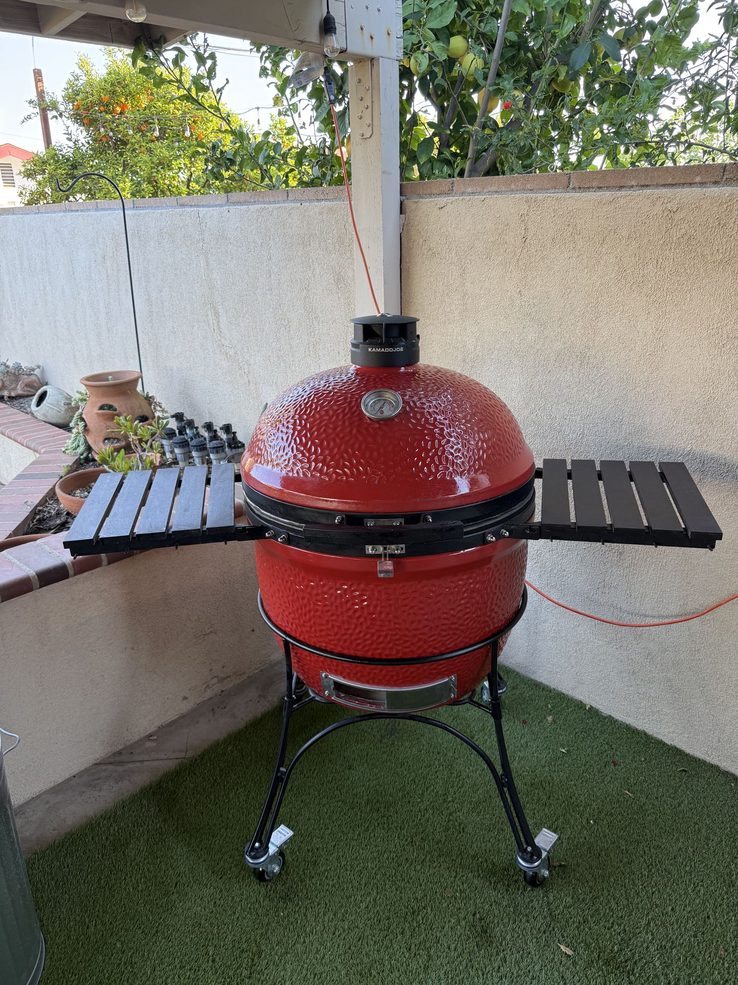 Upgraded cast iron grill grates. Upgraded ash basket. Absolutely no cracks or damage. Less than 20 cooks on grill. Sells for $2300 new.