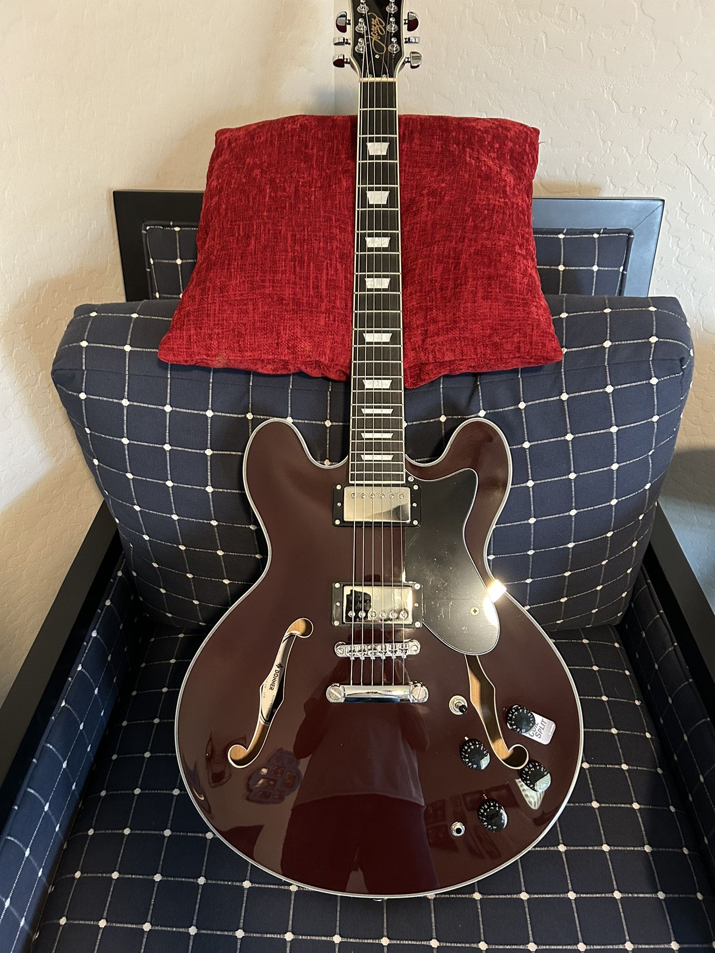 For sale is a just like new, never used Donner Semi-Hollow Body 335 electric guitar! Guitar was purchased online new early 2023 and has had no use! Donner Model DJP-1000 Jazz and is Burgundy Red. Has two H-H pickups with coil-splitting. Very nice craftsmanship in these Donner 335 clones! Asking $375 and includes soft case, and like new Fender Mustang Amp,……. All Just like new! Please be advised my price is firm at this time, and I will not respond to silly lowball offers, so save yourself the time. Cash only sale, not interested in any trade offers. Lastly, be advised, I will not accept any bills larger than a $20. Appreciate your time looking!