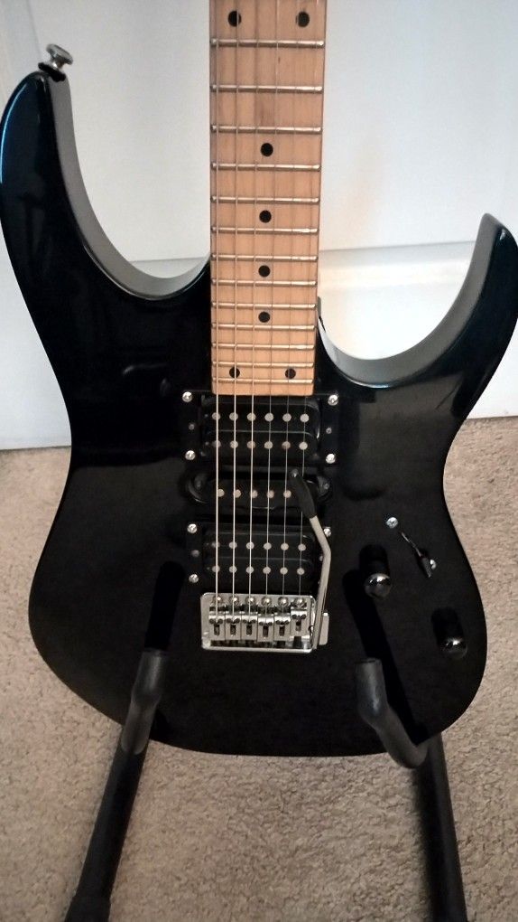 Hello players / buyers. I have this nice Ibanez RG ready for a nice home. Great gift for you or a family member. New Ernie Ball strings 9 gauge -oiled fretboard -electrical cleaned. 5 way switch. Thanks and talk soon. Test when we meet no problem. Also can make it a combo deal with amp if you like.