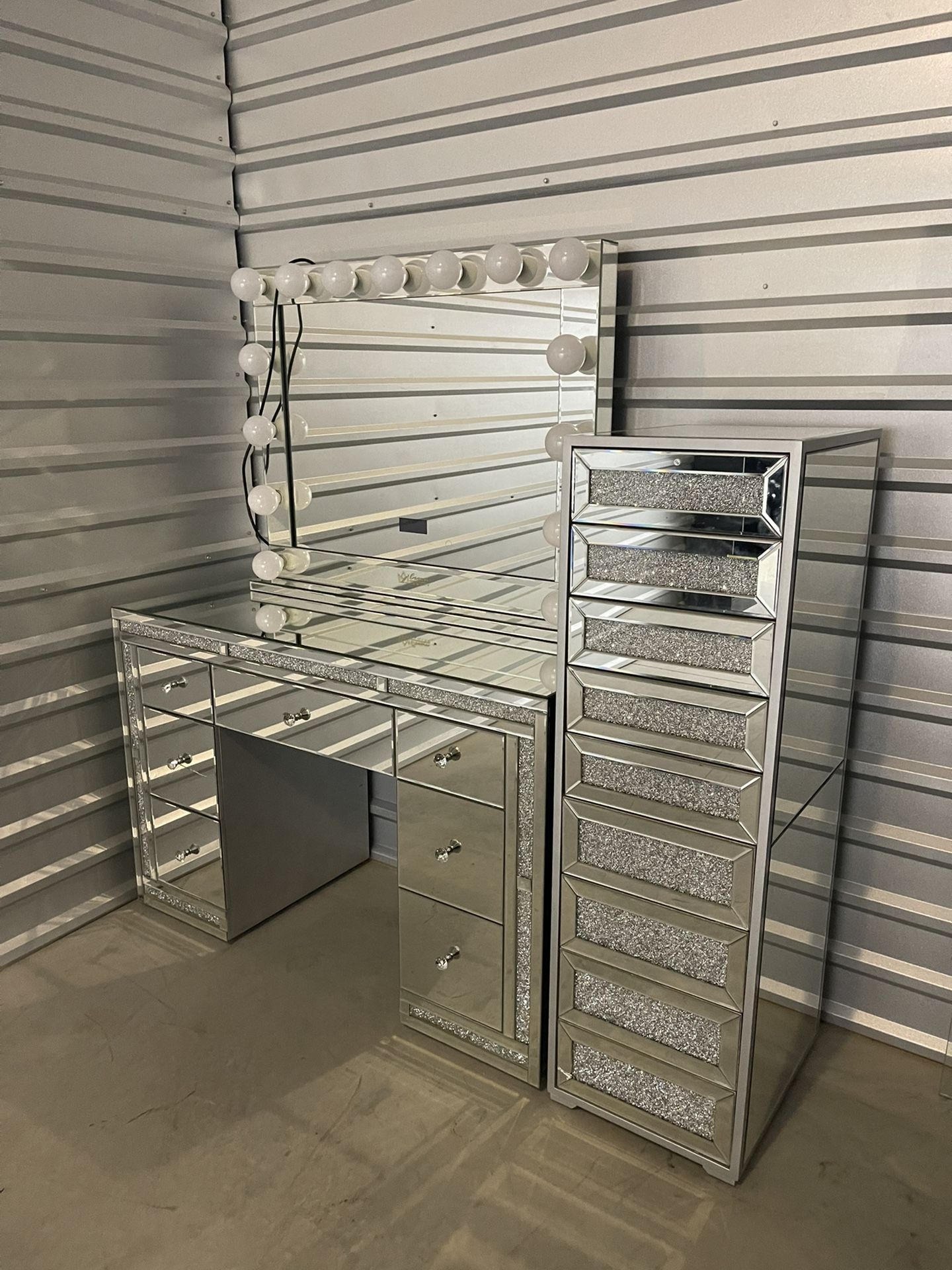 Vanity Mirror with lights and speaker 9 drawers dresser