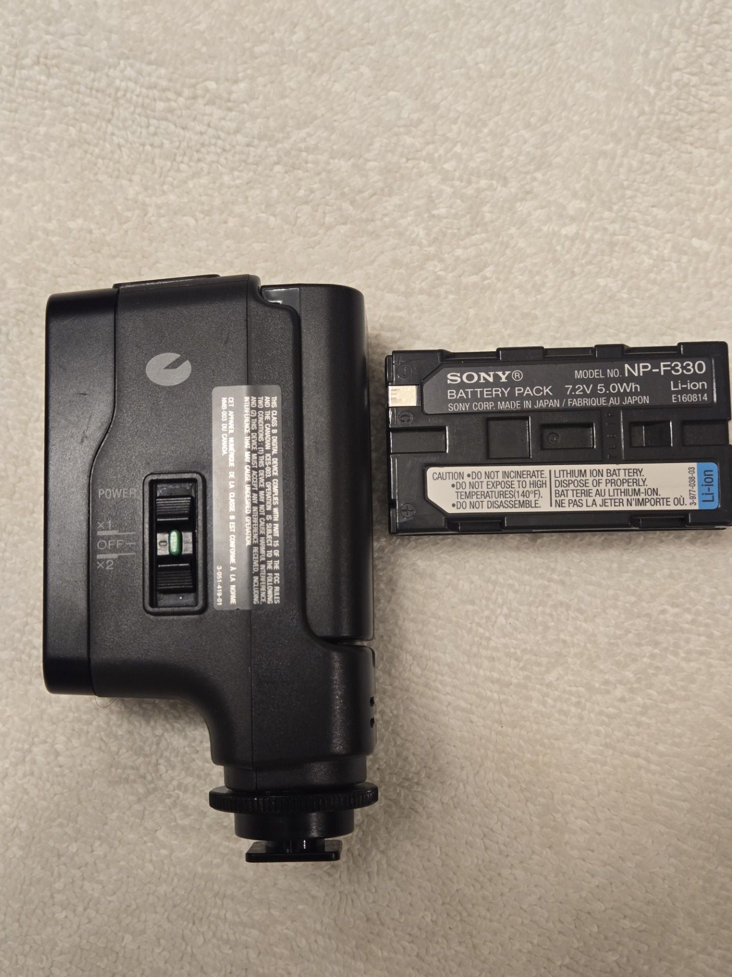 The Sony HVL-20DW2 is a 10W/20W dual-lamp halogen video light designed for Sony camcorders, featuring a switchable power mode for 10W or 20W operation. It uses L-series NP-F batteries, provides roughly 26-degree illumination, and operates efficiently for close-up video, though it runs hot. The unit connects via a cold shoe and includes a 1/4-inch tripod mount. Battery Compatibility: Powered by Sony NP-F series batteries (e.g., NP-F550, F750, F960). Not8e: 20W mode requires a larger, higher-capacity battery (e.g., NP-F750) to prevent the battery's protection circuit from cutting power, which often happens with smaller batteries. And Sony NP-F330