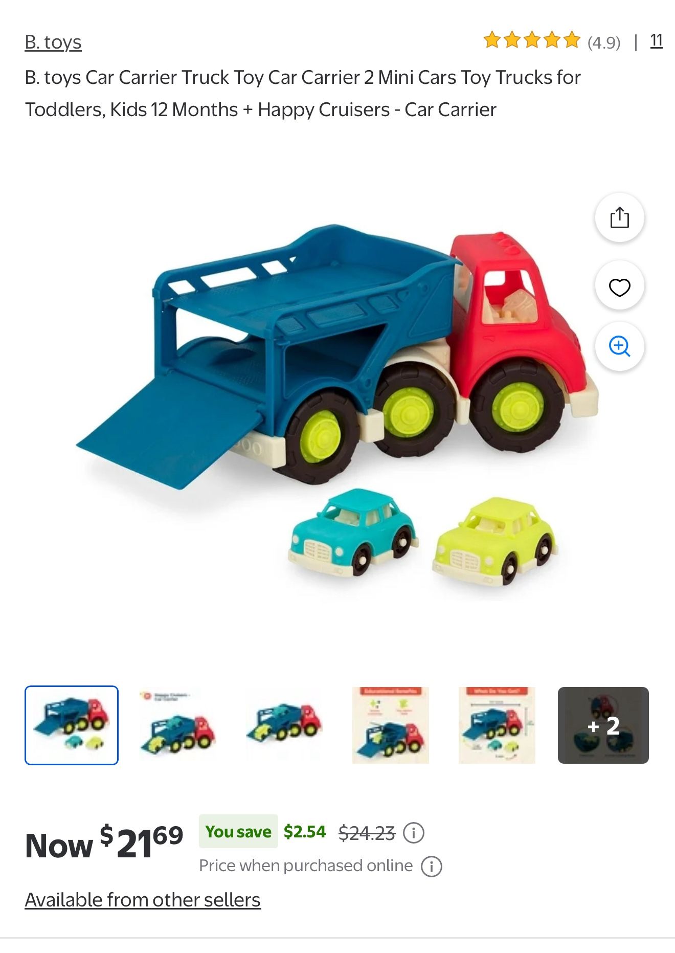 B. toys Car Carrier Truck Toy Car Carrier 2 Mini Cars Toy Trucks for Toddlers, Kids 12 Months + Happy Cruisers - Car Carrier