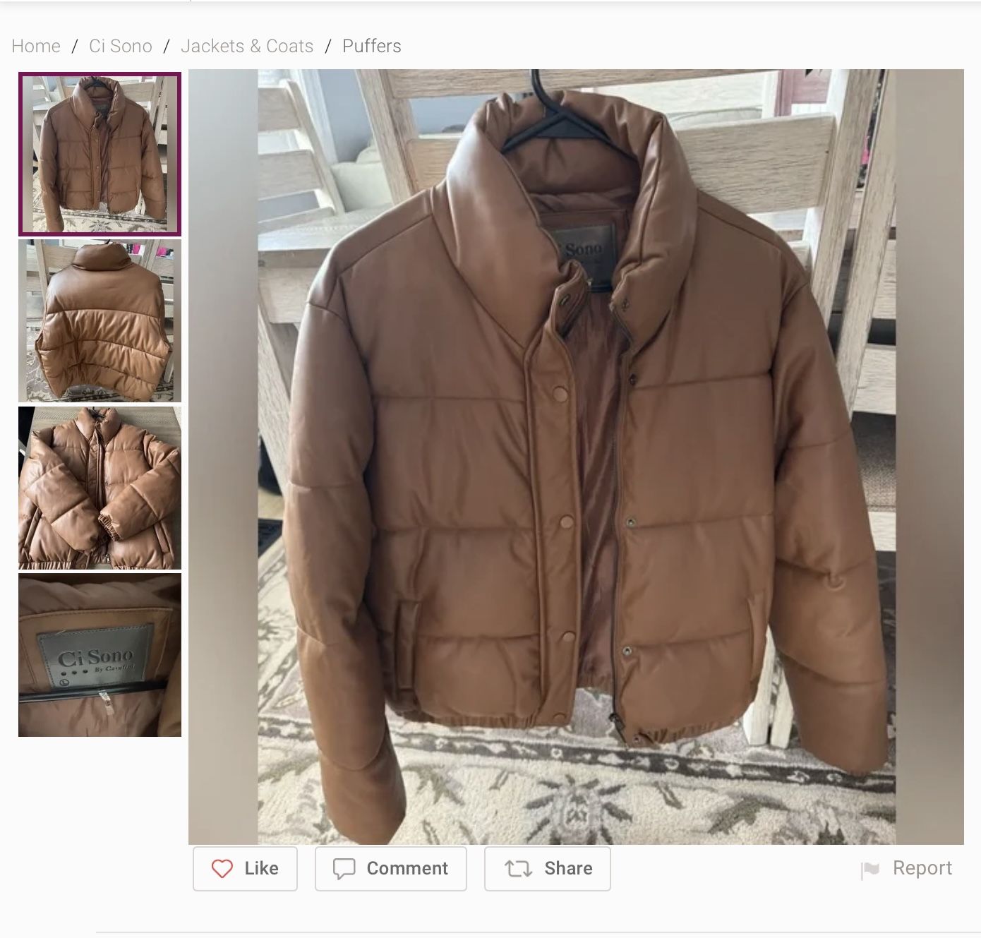 Brown Puffer Jacket. Ci Sonó High Quality Lg