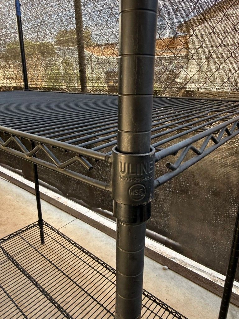 Heavy duty black wiring shelf, brand new. The shelving units come with the supports. Measurements: Length-2 ft Width-4ft Height-6ft