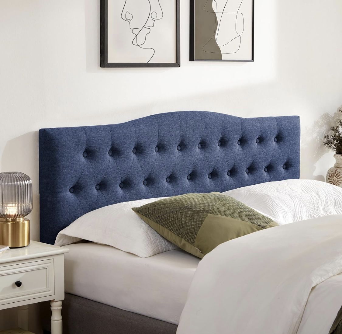 D16 Tufted Upholstered Headboard Queen Size, Sturdy and Durable Solid Wood Bed headboard, Fabric Headboard Adjustable Height from 37” to 51”, Modern Button Diamond Design Head Board, Blue