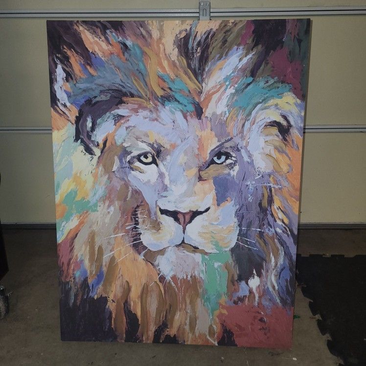 Amazing colorful lion painting. 40" tall and 30" wide,