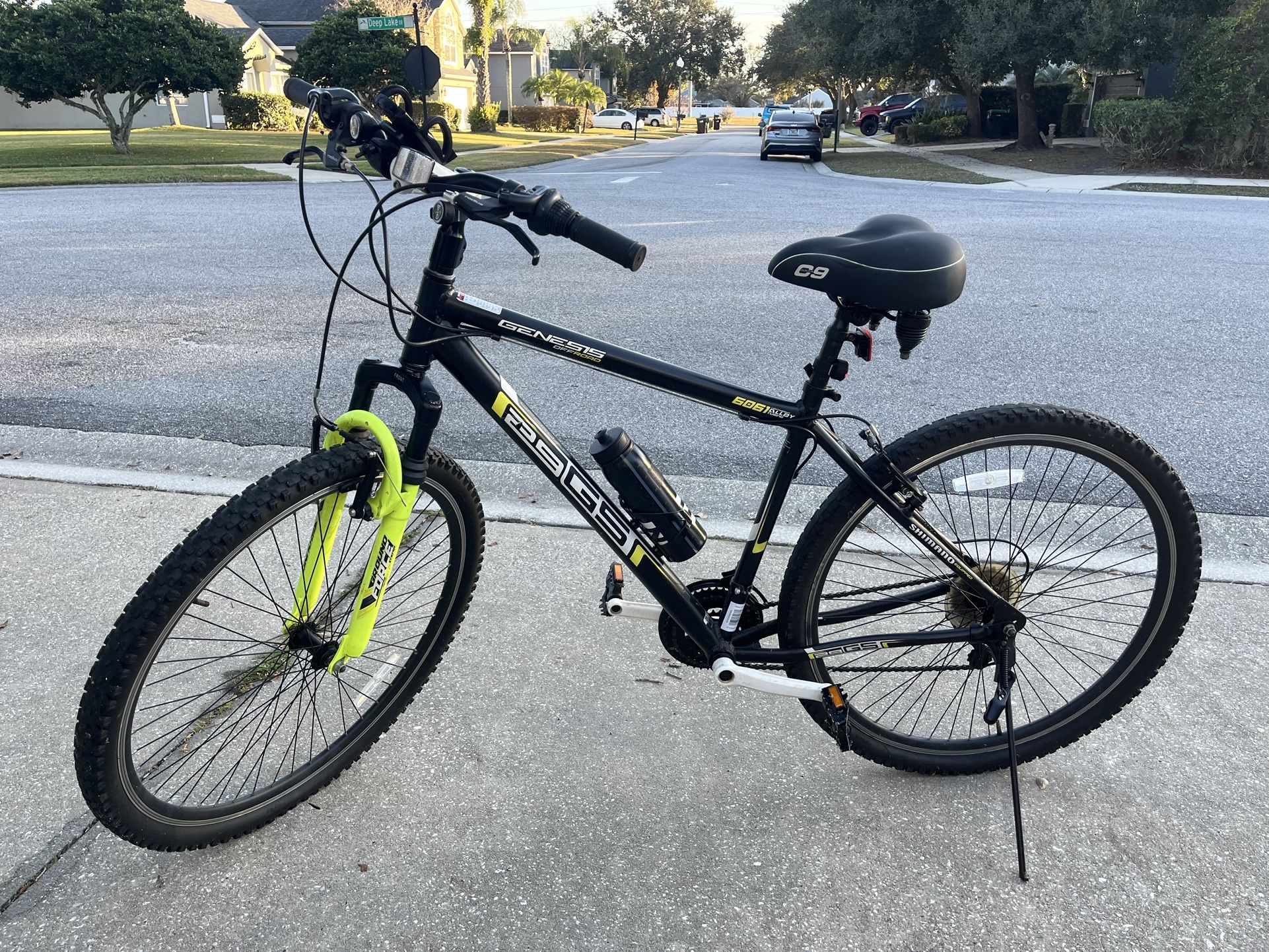 Genesis adult mountain bike in good working condition. Rides smoothly and is ready to go. ✔️ Adult size mountain bike ✔️ Front suspension fork ✔️ Comfortable C9 padded seat ✔️ Phone mount included ✔️ Water bottle holder & bottle included ✔️ Front & rear brakes work well ✔️ Kickstand included Normal cosmetic wear from use, no major issues. Great for neighborhood riding, trails, or commuting. Selling as we are downsizing for a move. Local pickup only. Cash or app payment accepted.
