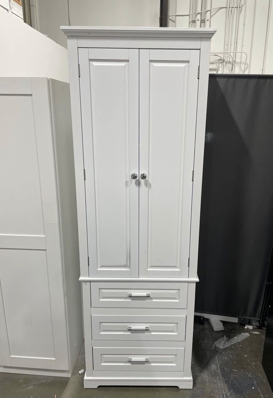AS IS New Assembled Bathroom Storage Cabinet w/ Doors and 3 Drawers Tall Kitchen Pantry Organizer