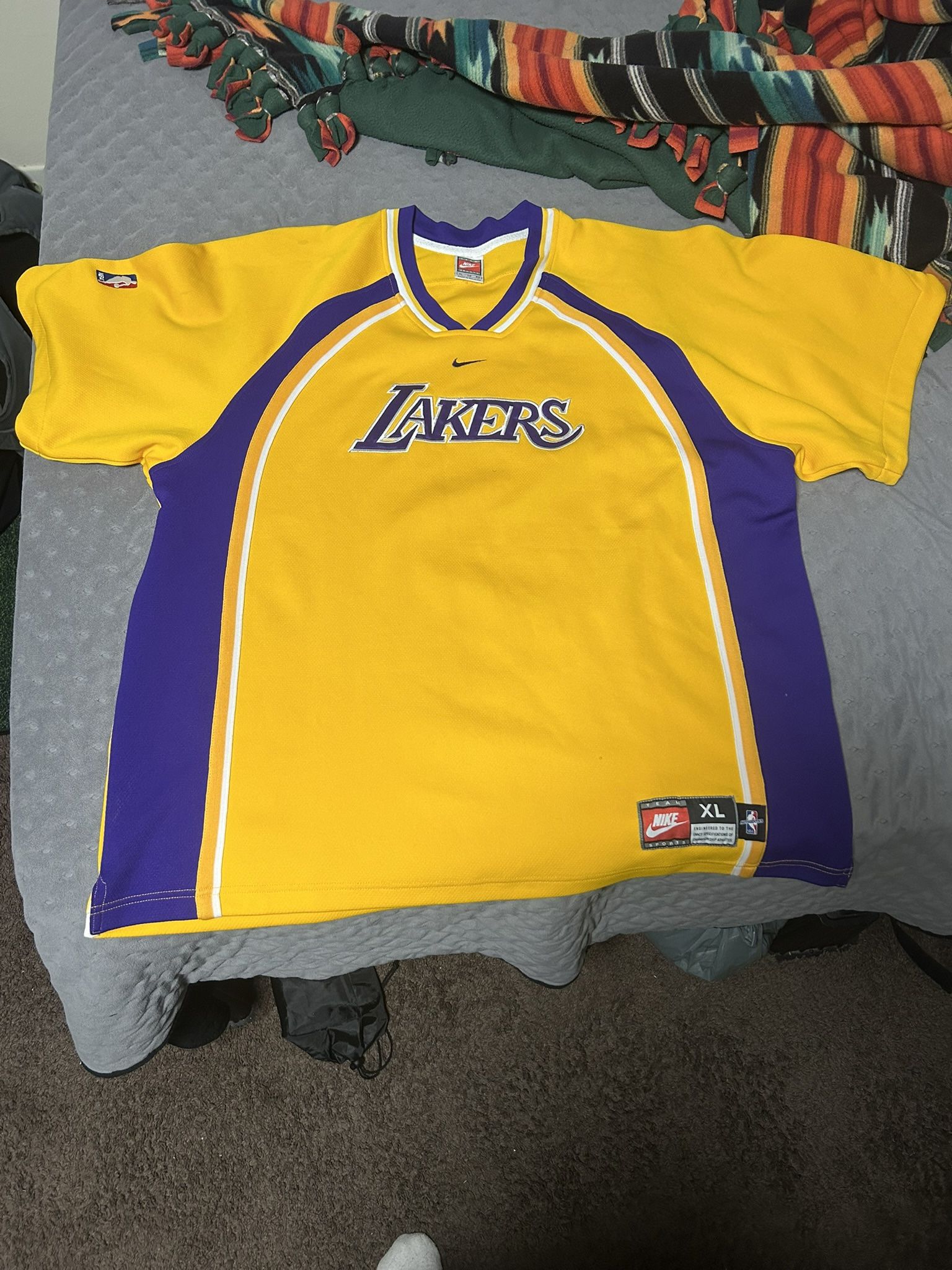 Official Lakers warm-up gear π£π Includes matching top and breakaway pants. Both in excellent condition β perfect for collectors, hoopers, or anyone repping LA style. Size: XL One stain on heel of one pant leg no tears. Clean and ready to wear.
