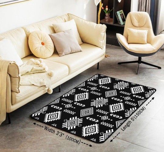 Brand new in box. Aztec Area Rug 3x5 Geometric Bedding for Kids Boys Girls Southwest Navajo Carpet Native American Tribal Non Slip Washable Decorative Rug Ancient Boho Ethnic Black White Bedroom Decor