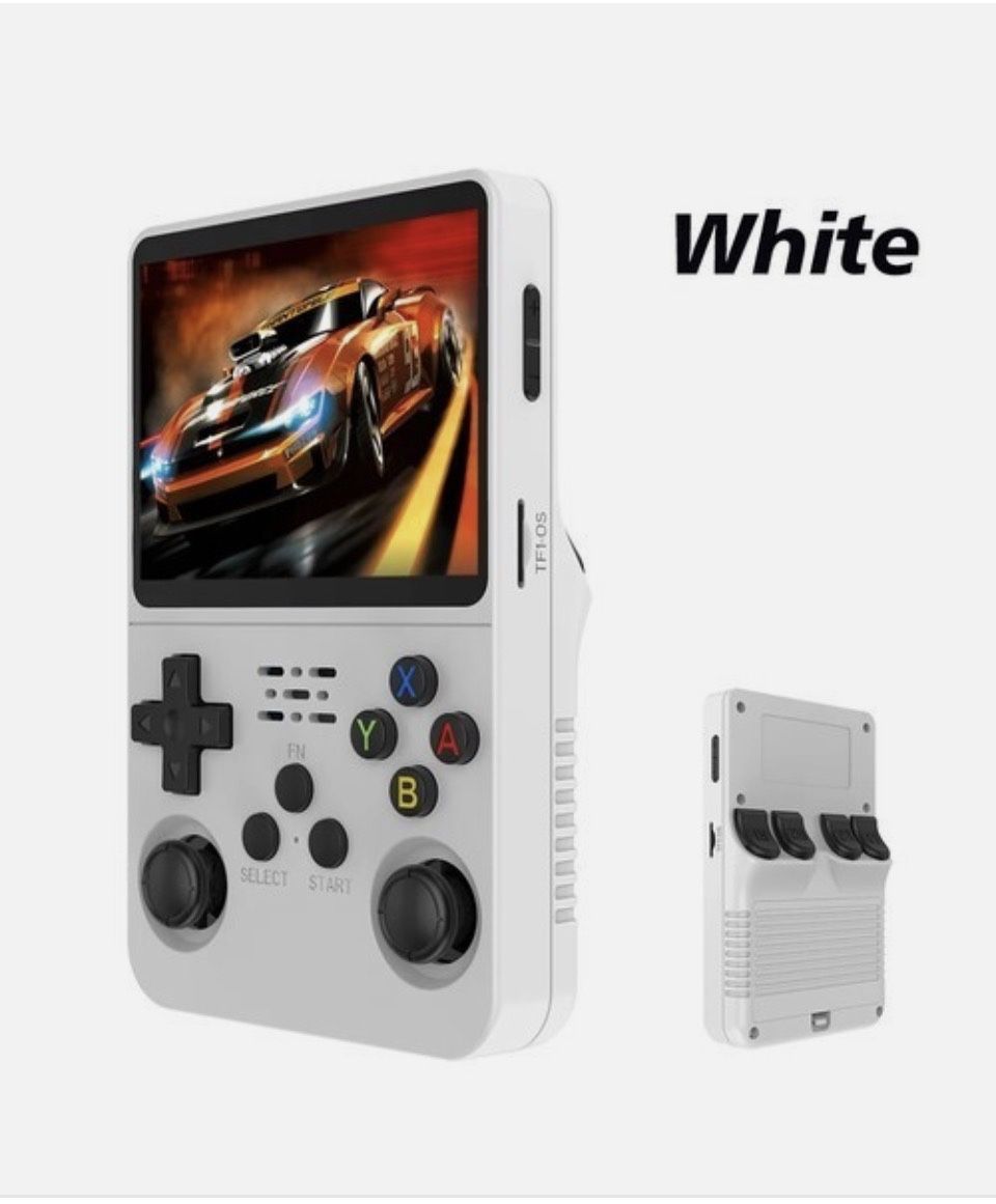 Brand new factory sealed R36S Game Master retro handheld gaming console in white color only. Never opened or used. Preloaded with 21,000+ games across multiple classic systems including Arcade, NES, SNES, Game Boy, GBA, Sega Genesis, Game Gear, PlayStation (PS1), PSP, Nintendo 64, Nintendo DS, Dreamcast, Capcom CPS1, and more. Bright screen, dual analog sticks, and ready to play out of the box. Perfect gift or retro gaming handheld.