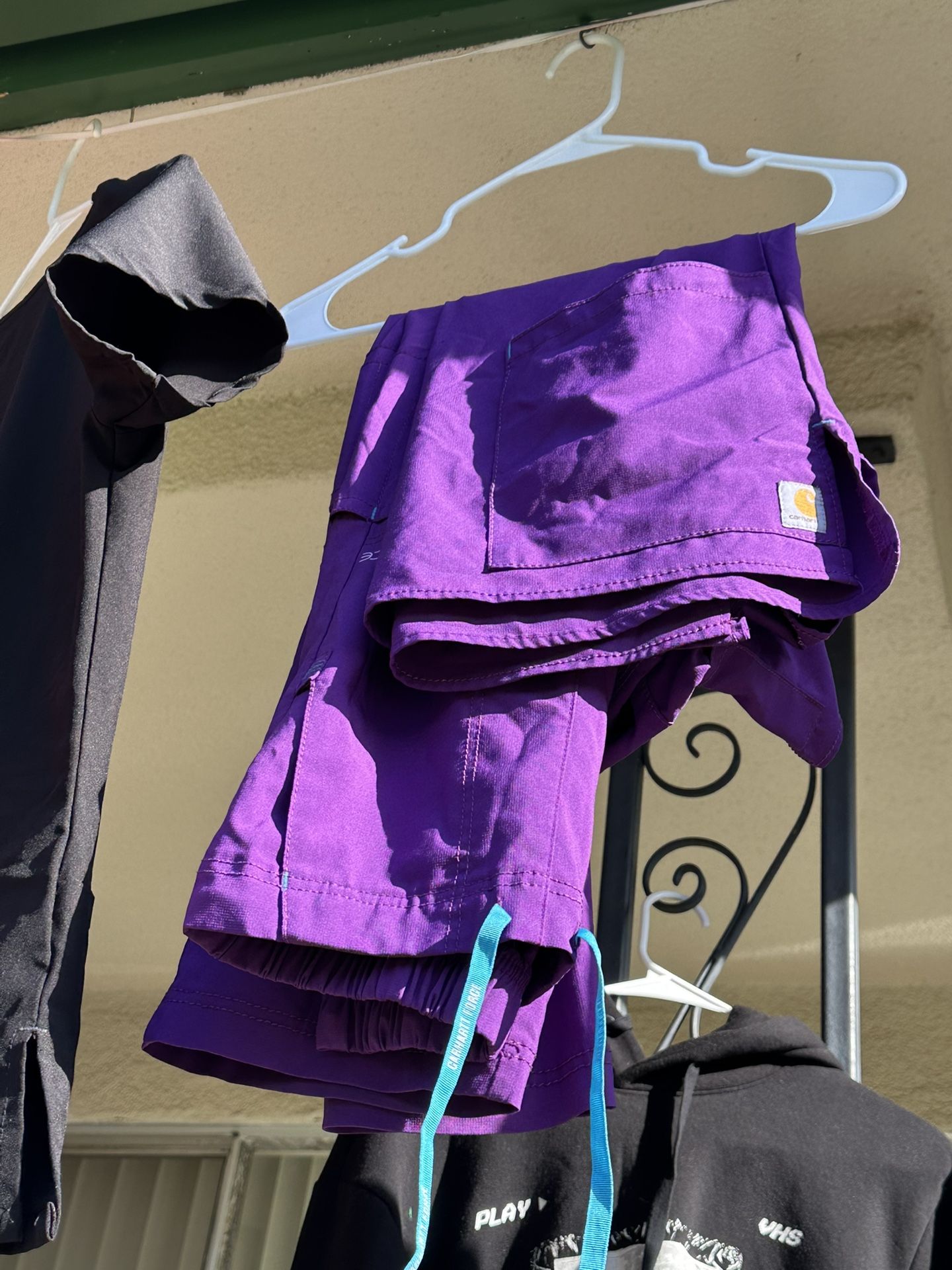 I have scrubs size small tops $4 each 2 sets one purple Carhartt asking $10 Army green greys anatomy $10