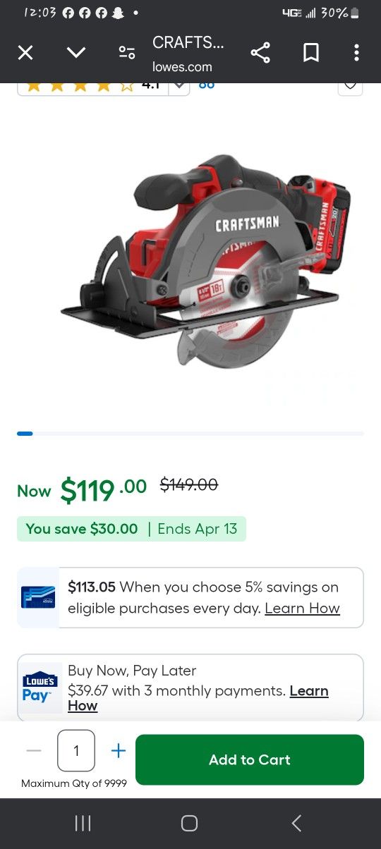 I have a craftsman Saw brand new NOT in the box but has never been used at originally 119 it's yours and I'll give it to you for 60 bucks
