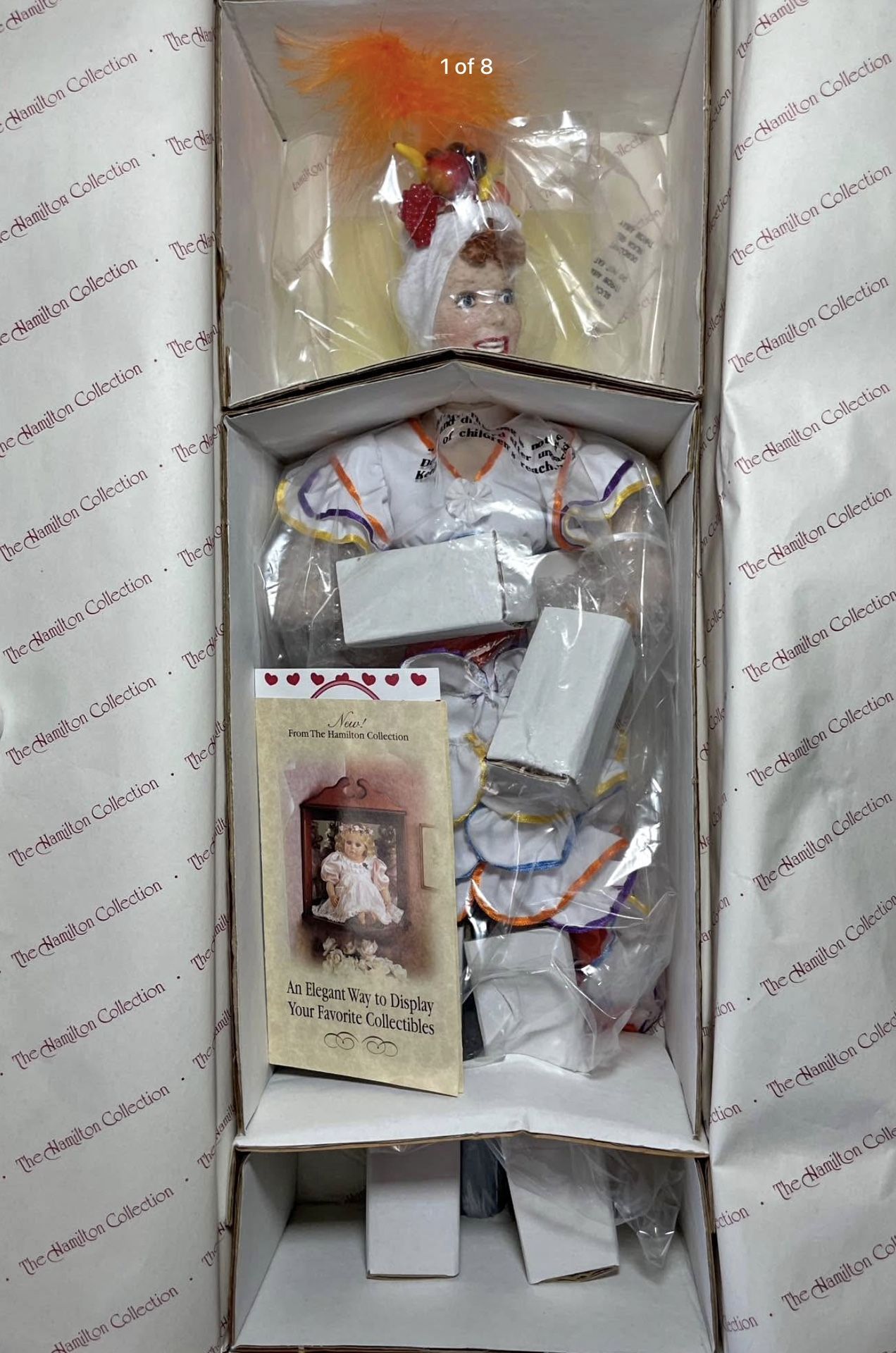 I love Lucy, Vintage Hamilton collection porcelain doll Carmen Miranda never been taken out of the box pick up in Menifee near Holland and Bradley