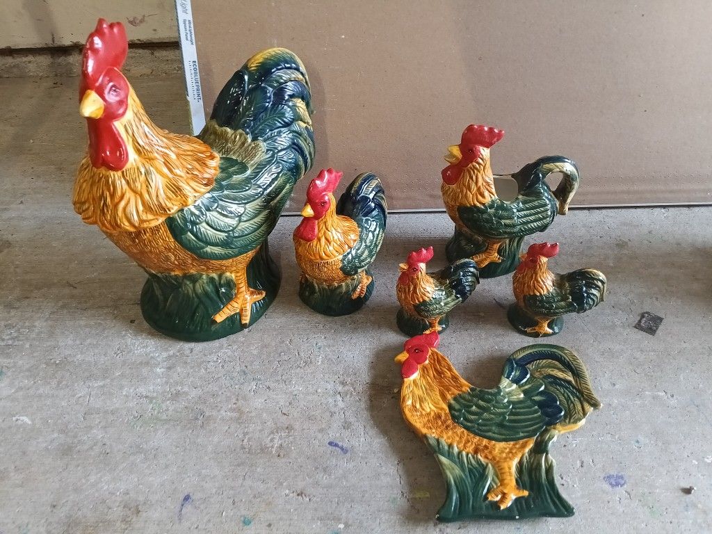 Rooster kitchen glassware salt and pepper shakers Milk&creamer Plate Cookie jar