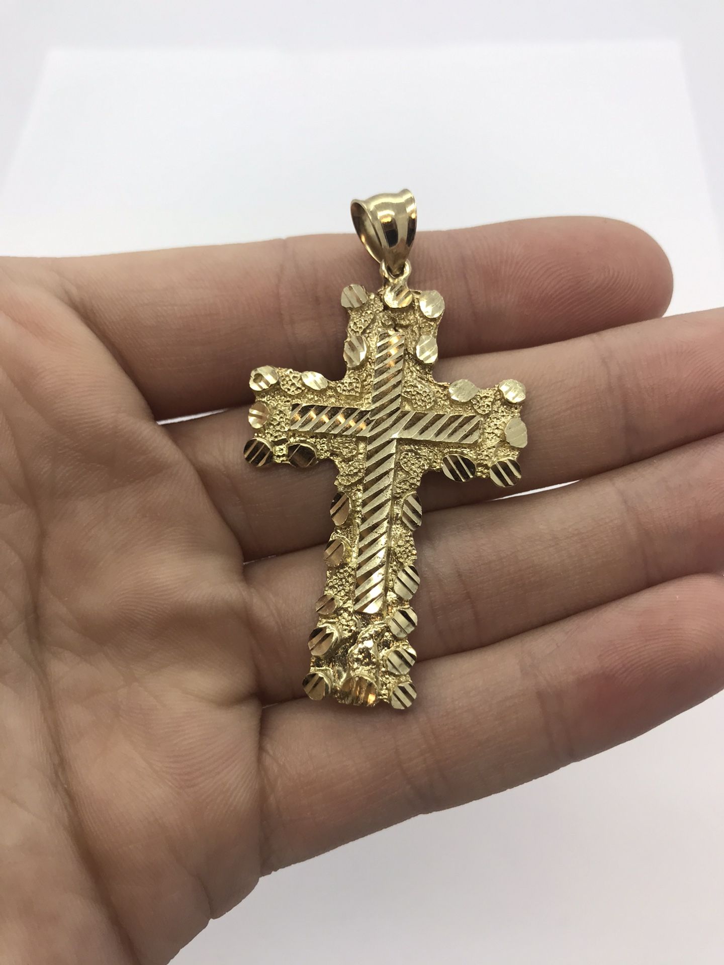 New 10K Solid Gold Nugget Style Cross