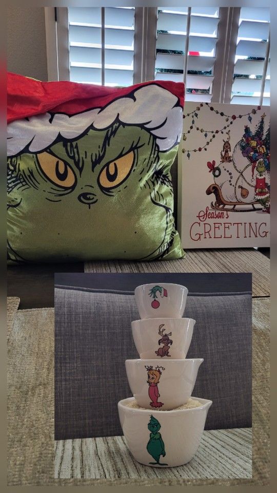 ⛔️ Pick Up near Pebble Hills High School 79938. 🚫 No delivery 💲Zelle/ or exact cash ❌️ Posted FCFS ⚠️ Firm Price ⚠️ ‼️Measuring Cups are Rae Dunn and Grinch decals have been added towards the back. You will receive everything in the pictures. Everything is new. ‼️