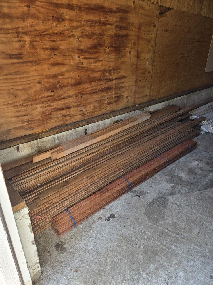 Oak wood flooring planks. Various sizes, mostly 10' or so long