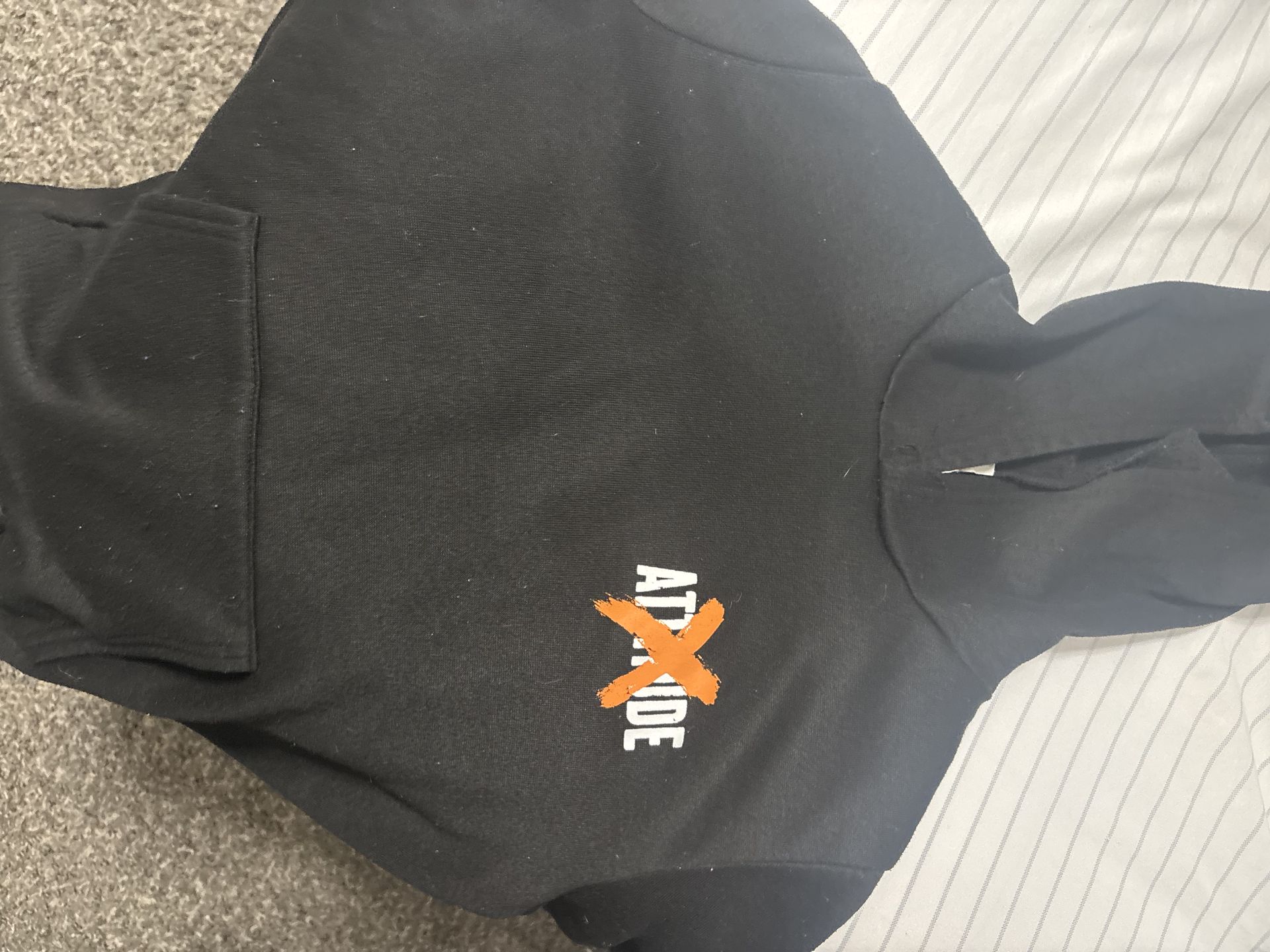 Clean ‘Motivated Over Attitude’ graphic hoodie. Youth size 11–12Y. Lightly worn, no major flaws. Cool streetwear style, perfect for school or casual w