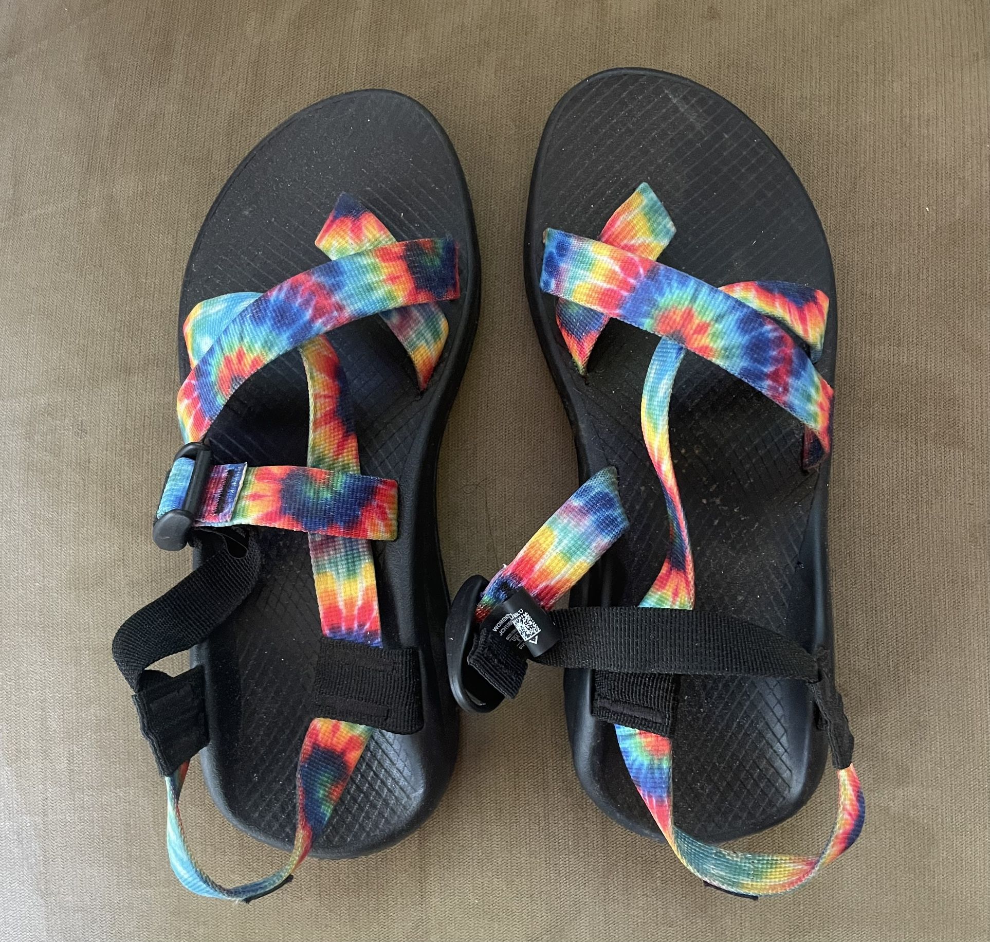 Lightly used tie dye Chacos. Women’s size 8. Only worn once, I love them but they’re too small for me. I’ll clean and sanitize the rubber before I send them so they’ll be good as new!